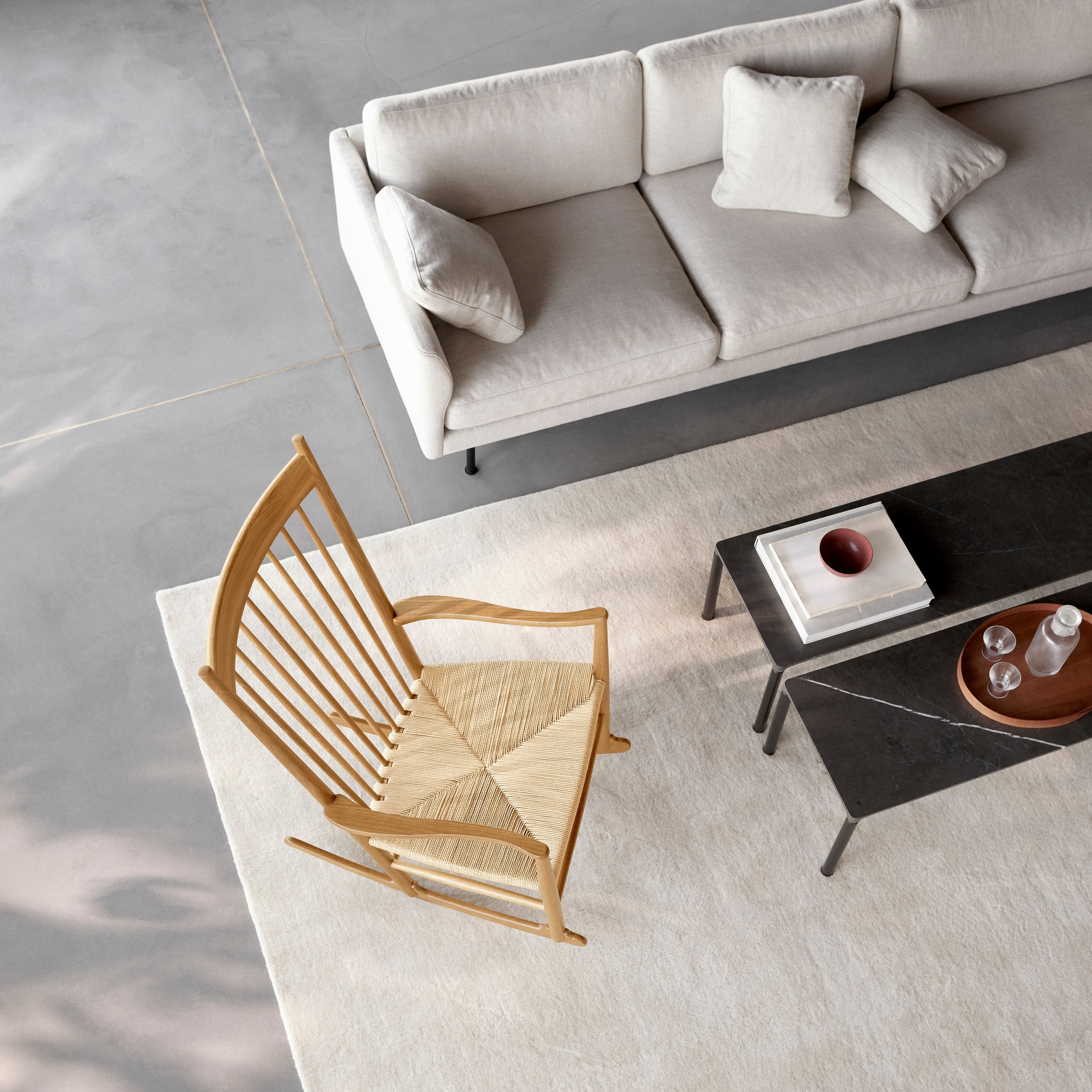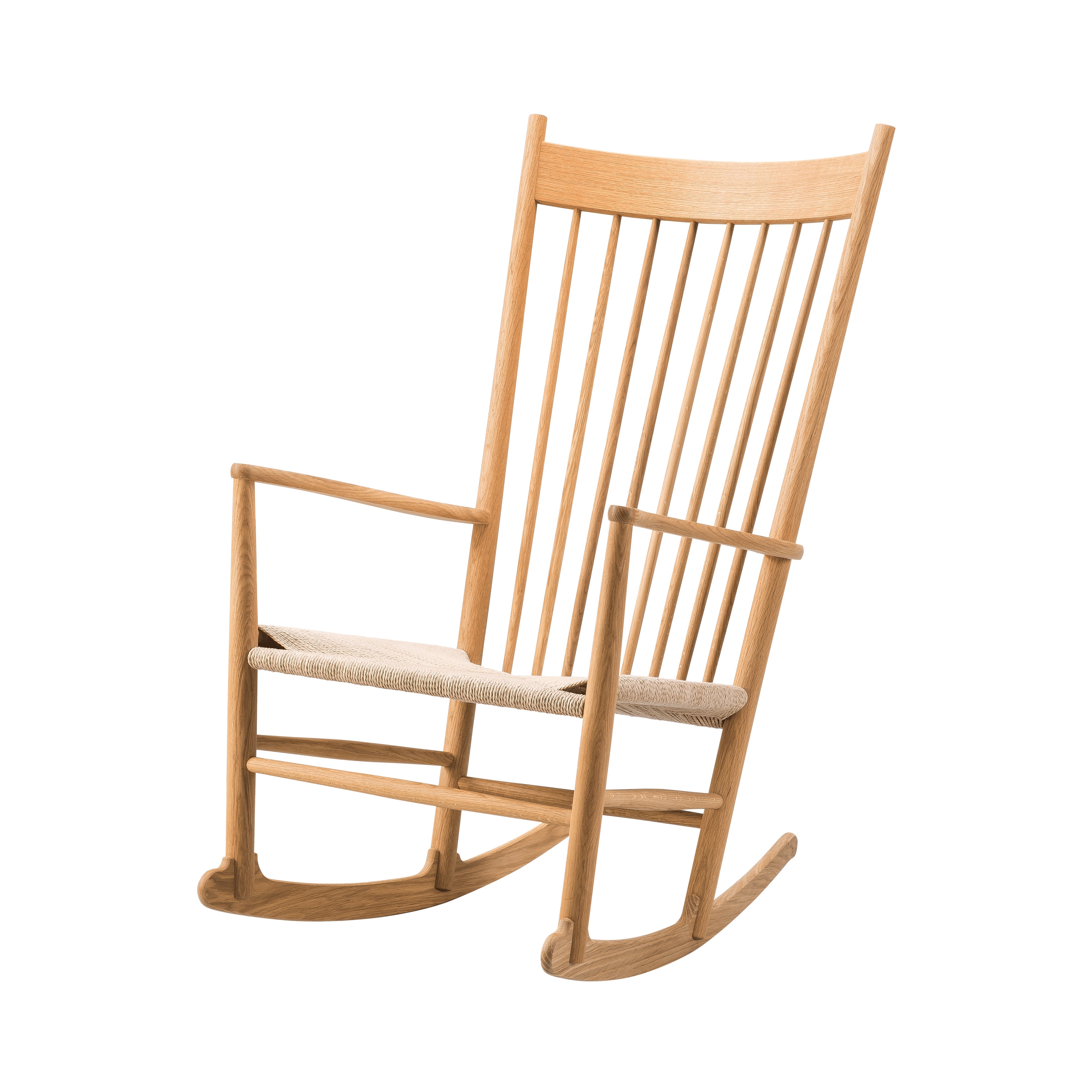 First seen in 1944, Hans J. Wegner's iconic rocking chair became an iconic design object almost from the start, still cherished around the world. J16 was conceived with comfortable ergonomics playing a primary role as well as freedom of movement in the precise engineering of the elements that contribute to the graceful rocking movement. The natural paper-cord seat adds support while creating a subtle contrast in texture to the signature look of the smooth structure in solid oak or walnut.