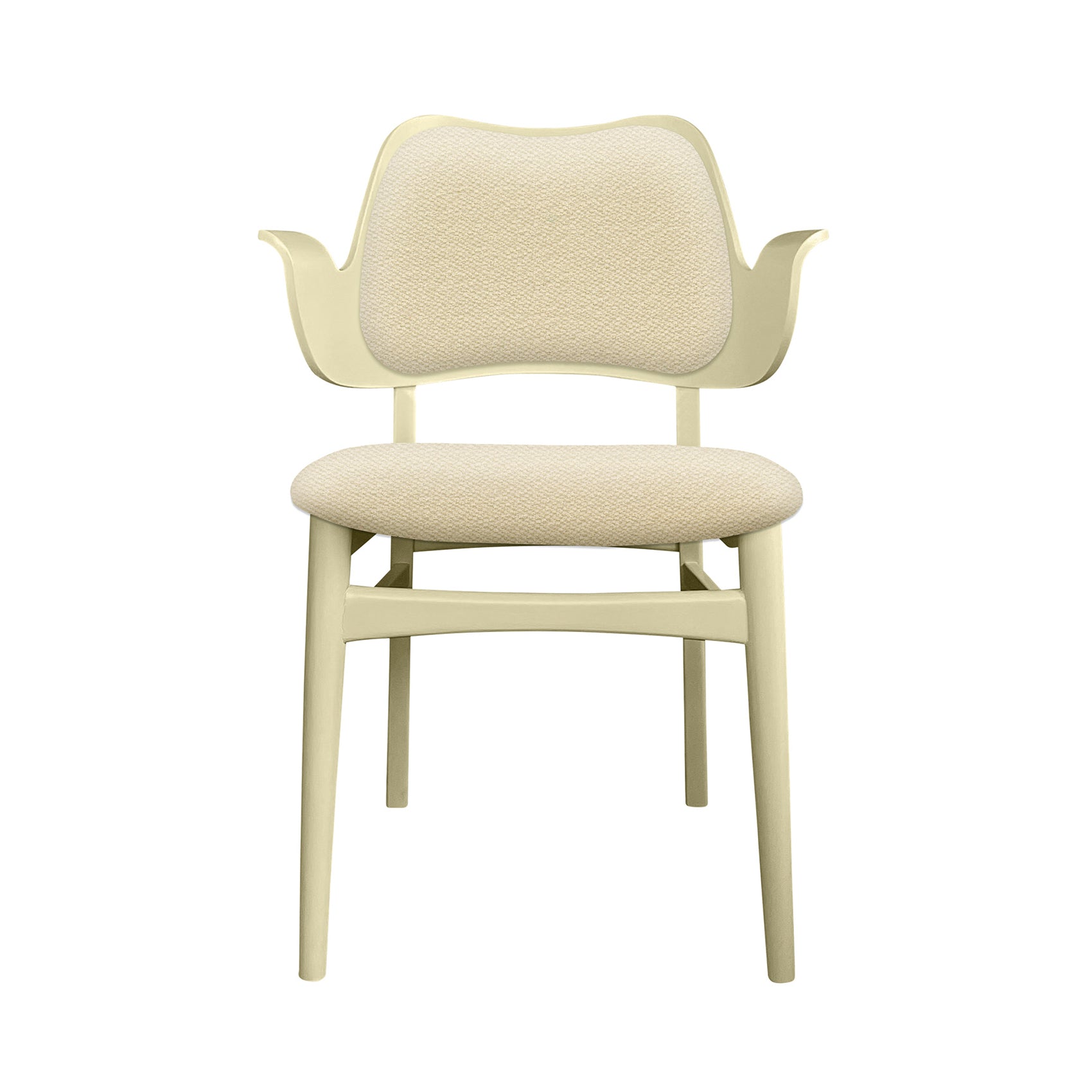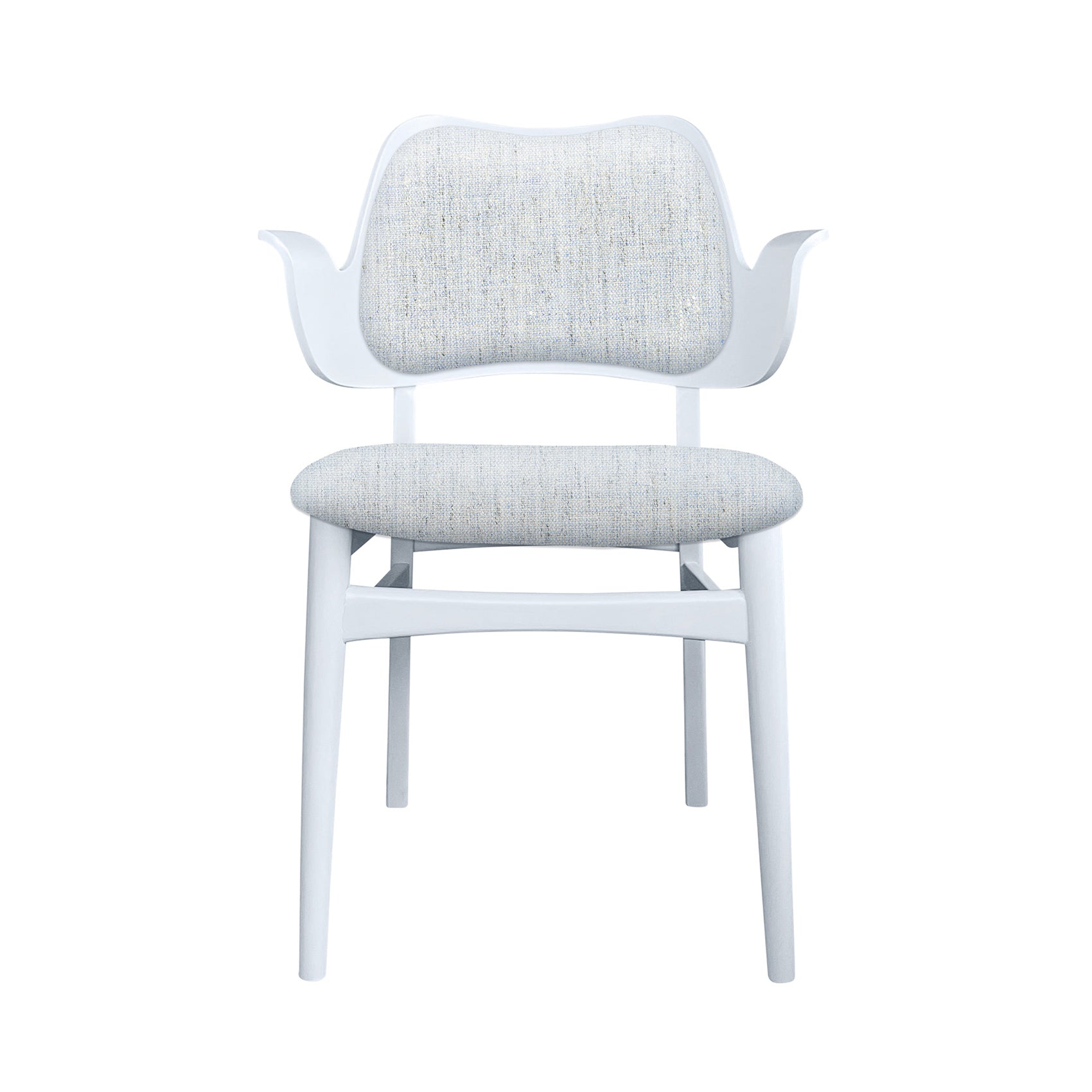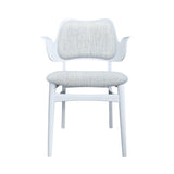 The Gesture Dining Chair is a 1957 design by renowned Danish architect Hans Olsen. This chair stands out for its distinctive curved form and welcoming design, making it a perfect fit for both dining and living spaces. Upholstered in high-quality fabric, the chair offers exceptional comfort with both the seat and backrest fully padded. The solid wood frame is available in finishes such as teak oiled oak, white oiled oak or black lacquered beech.