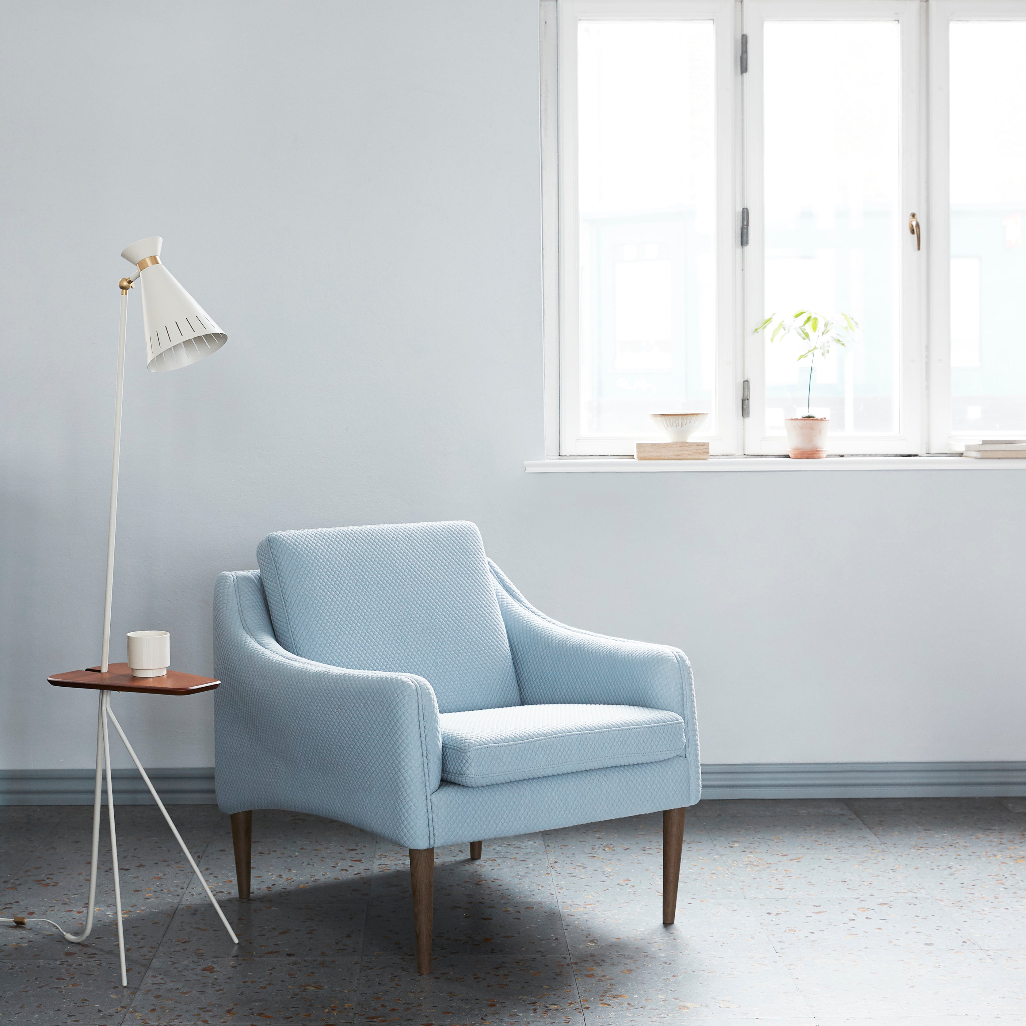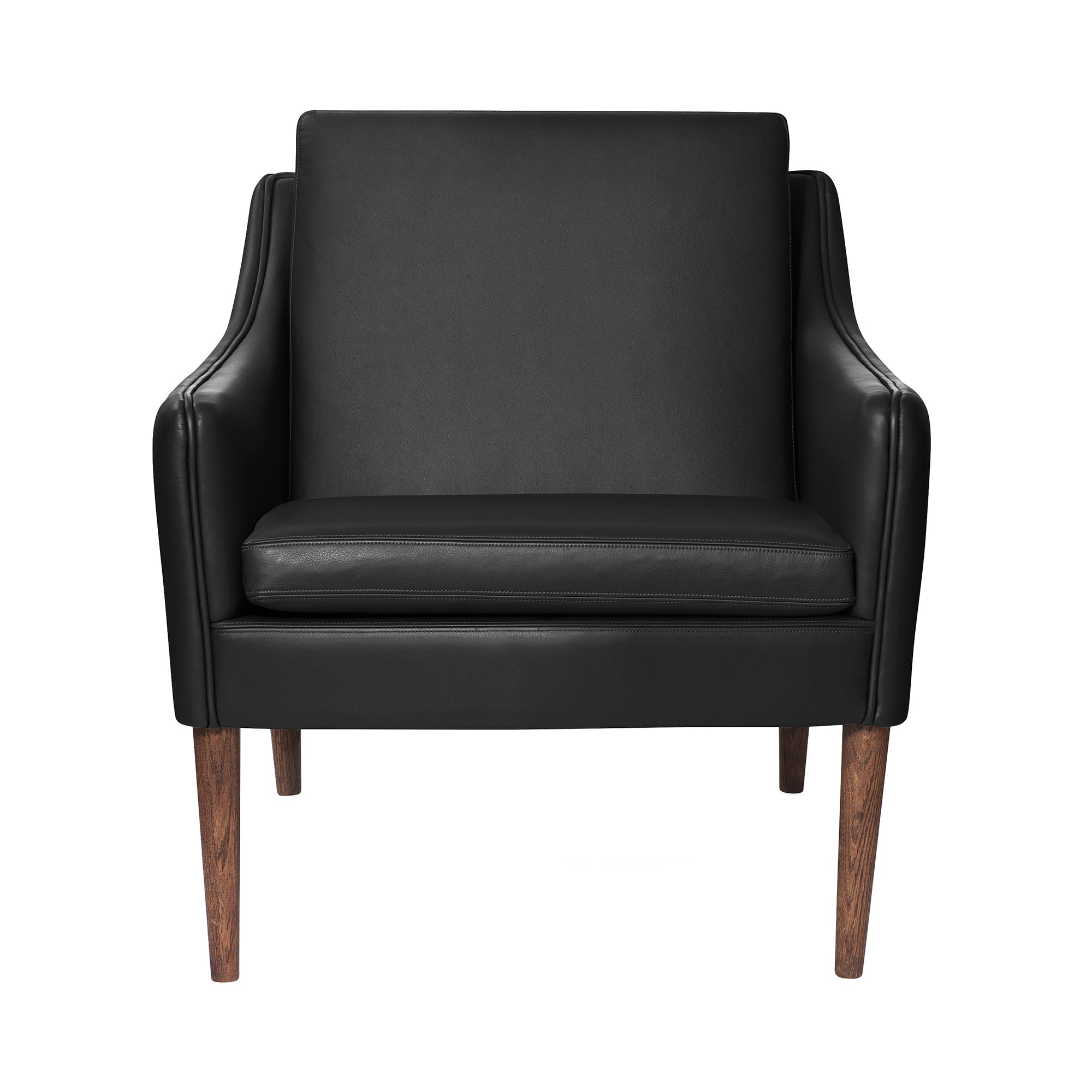 The Mr. Olsen Lounge Chair is a refined piece of Danish design history, originally crafted by renowned architect Hans Olsen in 1958. This chair is celebrated for its slender, organic form, which stands out from other mid-century classics due to its lightness and elegant lines. The soft, curved armrests and tapered wooden legs contribute to its graceful appearance. Its sturdy frame is complemented by solid oiled oak or smoked oak legs, and the upholstery is supported by a foam and spring system for lasting comfort. This timeless design brings a touch of classic mid-century elegance to modern interiors.