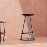 With Gustave, French designer Charles Seuleusian adapts his geometric, airy-looking stool as smart bar and counter seating. From French maker Hartô, the solid-wood and matte-lacquered metal construction is grounded in its floor-hugging circular base. With a generous contoured seat in natural solid oak with a matte finish, the stool’s base comes in a range of specially curated colors.