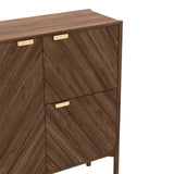 Marius Dresser is a multifunctional storage piece with a pair of doors and a flip-down drawer that reveal 6 shelves for clothes, books or tableware. From French design brand Hartô, Pierre-Franois Dubois gives it a nautical air with curved oak lines and a diagonal front motif resembling sails. In airy natural oak or with contrasting door fronts in light grey or petrol blue.
