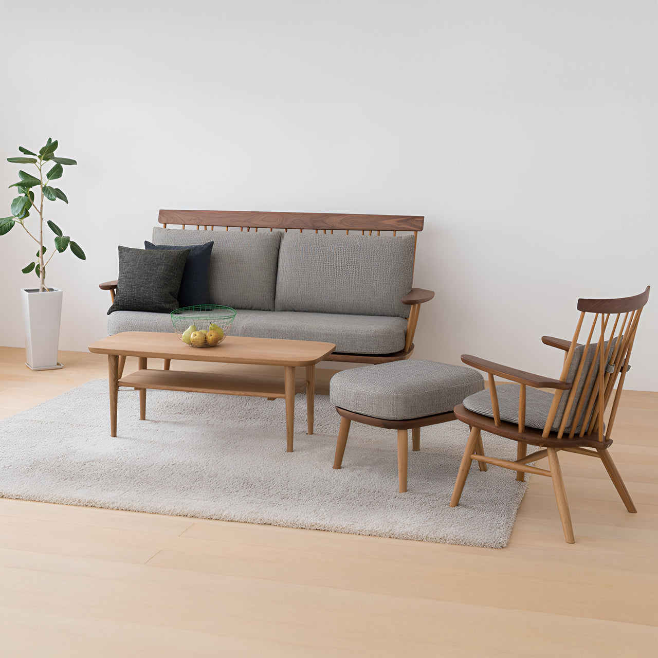 The Newmckinley Personal Chair Sangyo is a reimagining of the classic Windsor chair, first introduced in 1969. This chair offers a spacious seat, allowing for comfortable cross-legged sitting, with gently curved armrests that provide support. A unique "dovetail" design at the back of the seat extends into a V-shaped line, contributing to both the chair’s structure and look. The seat is carefully contoured for comfort during extended use, and its front edge is beveled to reduce pressure on the thighs.