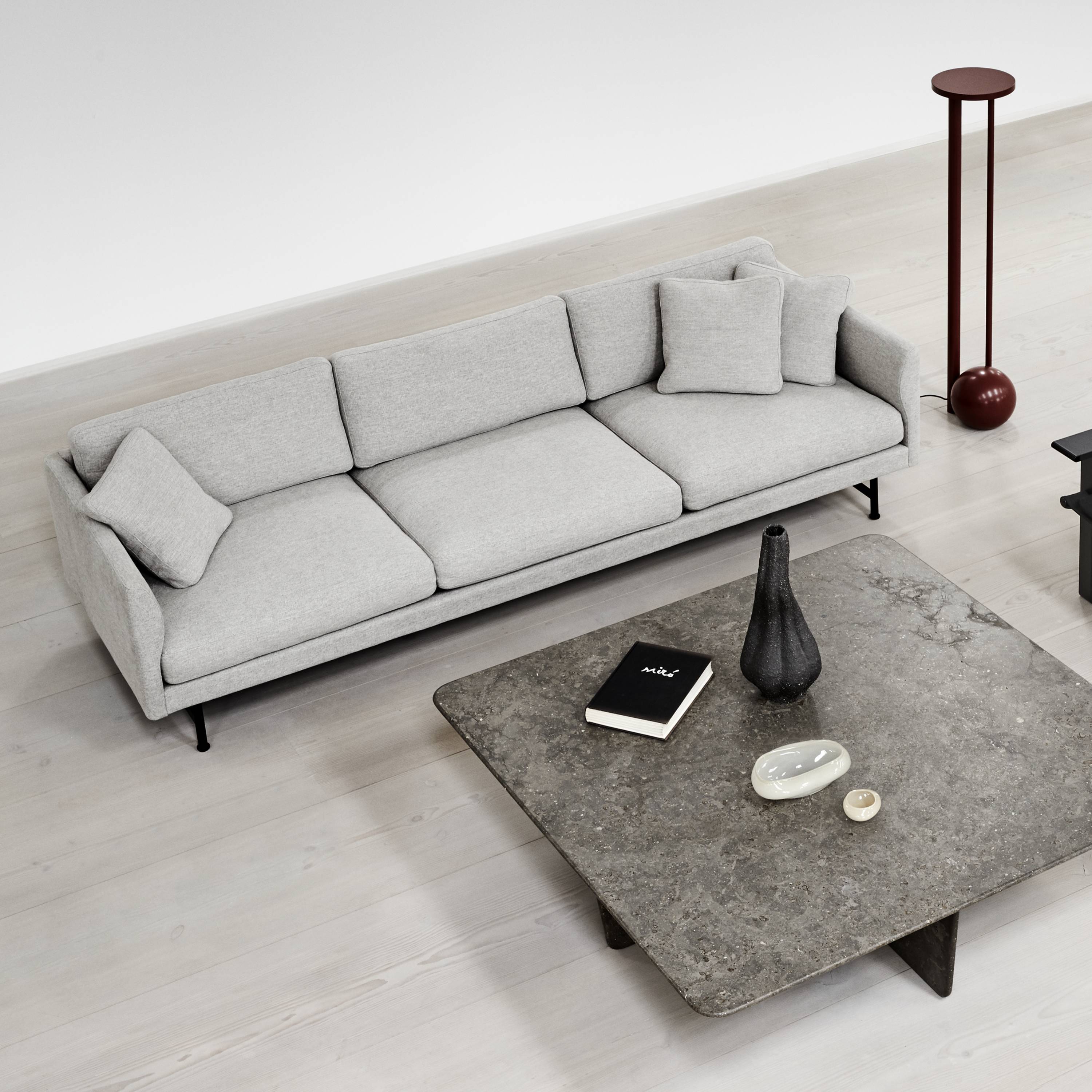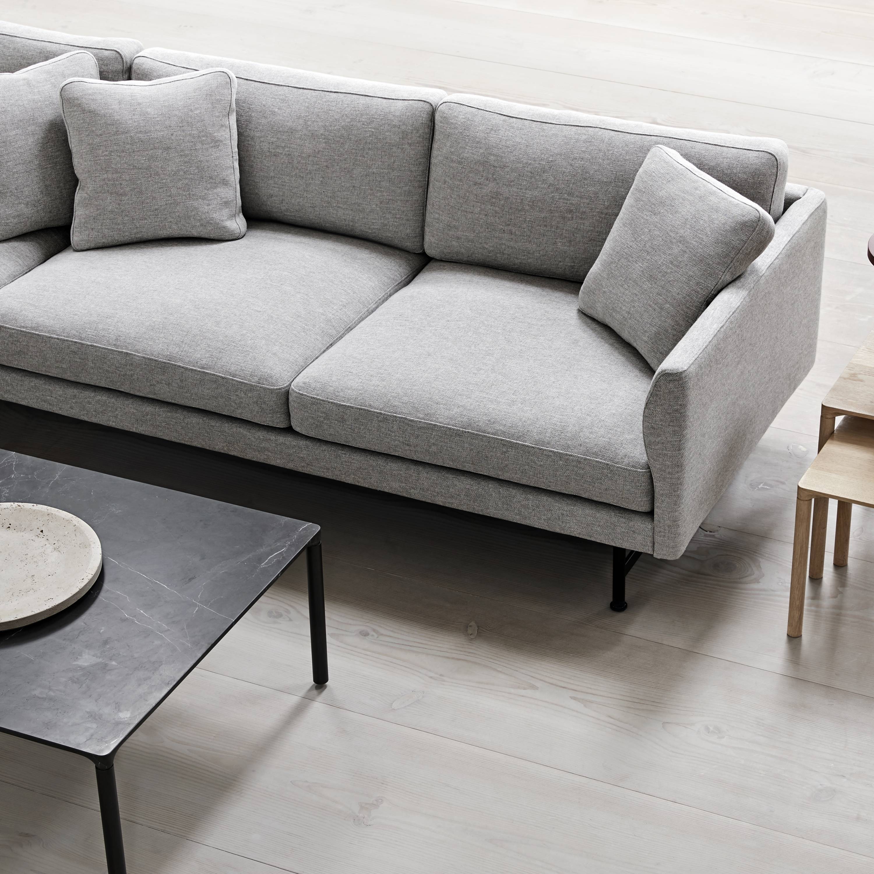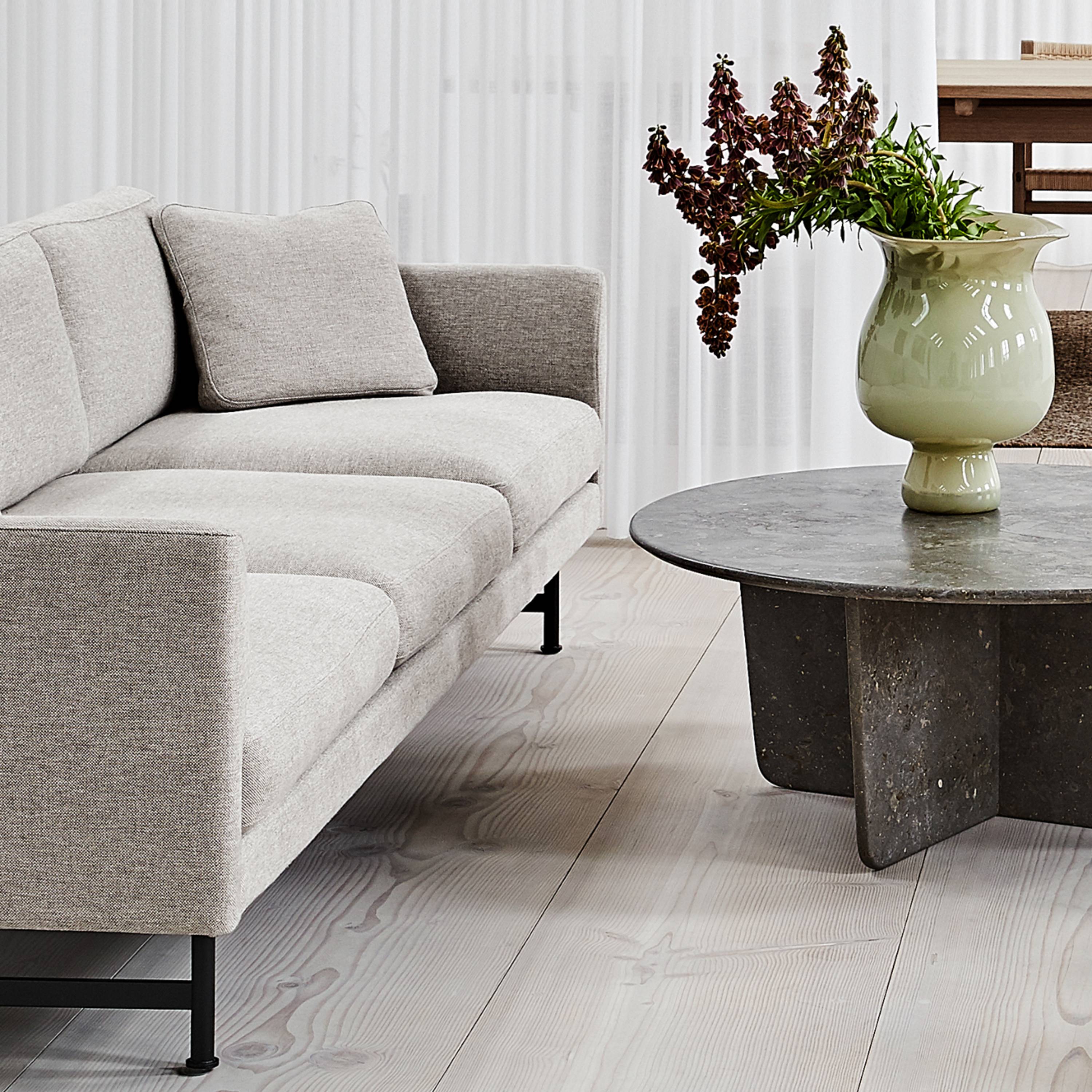 A forward-thinking take on a standard-size sofa, this version of Calmo hovers on slim legs in matte-chrome or black-painted metal finish. London-based designer Hugo Passos tempers the straight lines of the 3 seater with invitingly rounded cushions while the seat depth is equally adaptable to working on a laptop or hours of conversation. With Fredericia’s long expertise in upholstered furniture-making, the sofa’s construction features precisely tailored contours playing against the softer expression of the loose-filling cushions that deliver unfettered comfort.