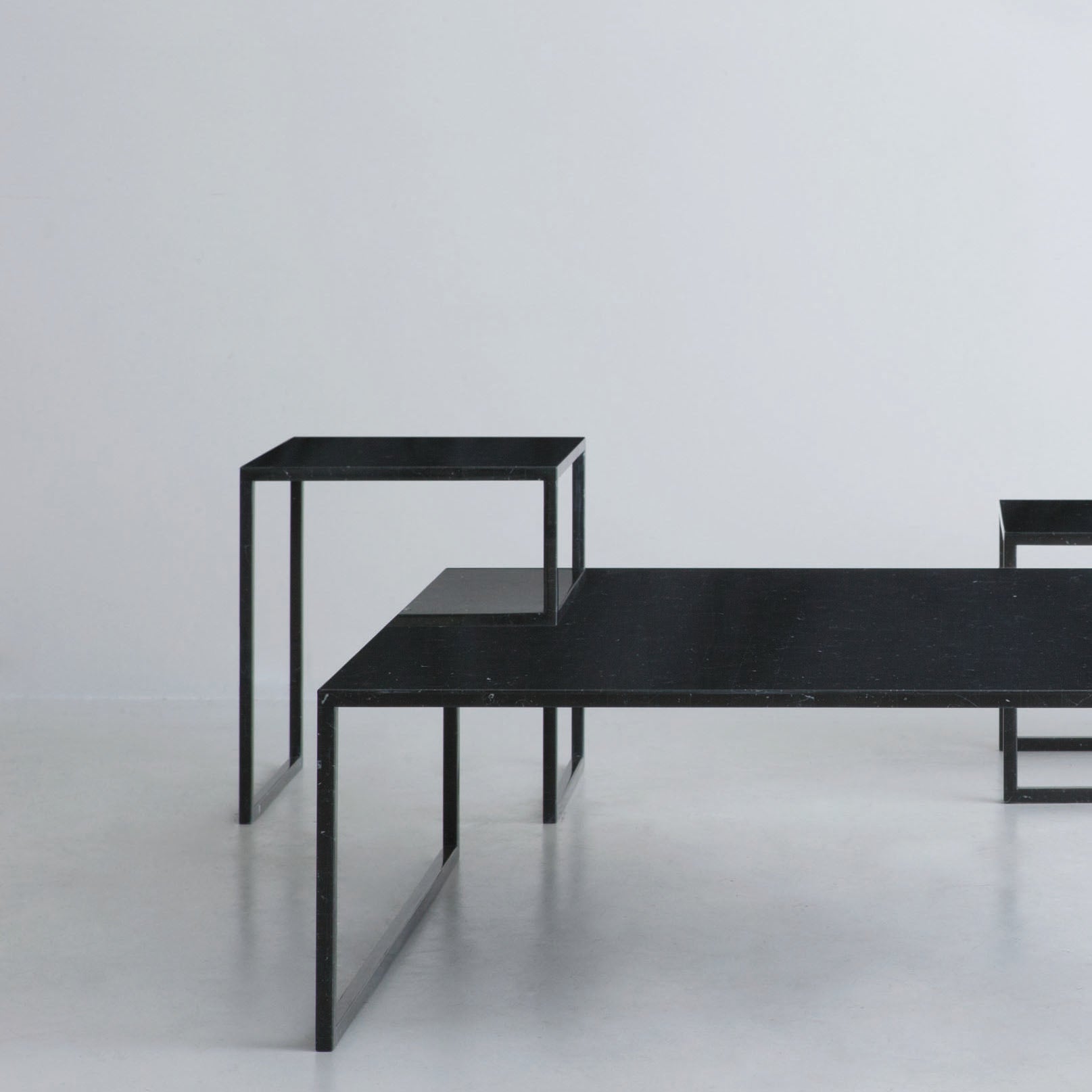 Virtuoso artisan skill suffuses By Interiors’ allover marble occasional table with its striking light and clean shape. BK has a timeless geometric profile, down to its astonishingly thin legs—all achieved with the stone painstakingly inlaid in a steel frame. Choose from either the lower coffee table or higher side table in creamy Carrara, inky Marquina or honey Emperador varieties.
