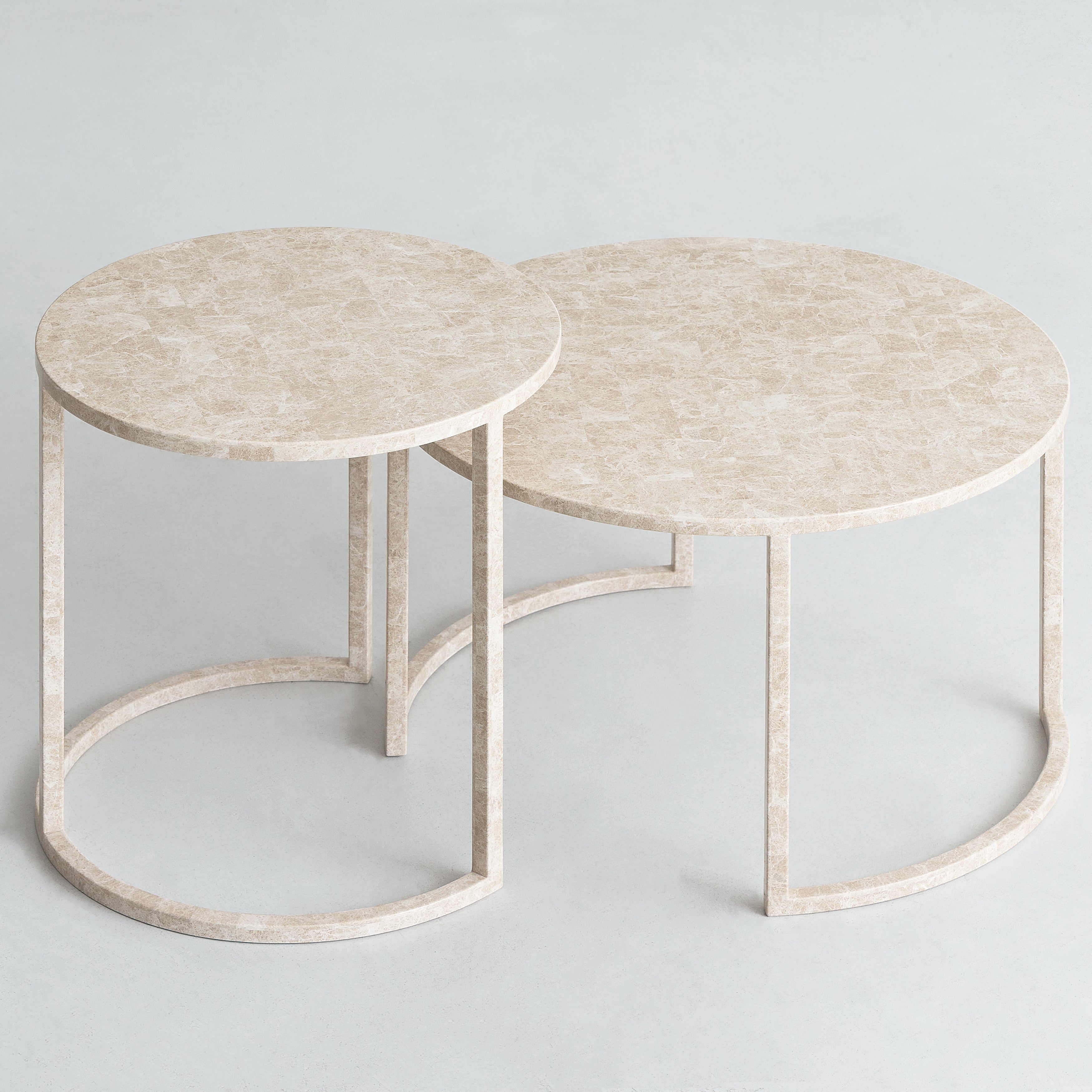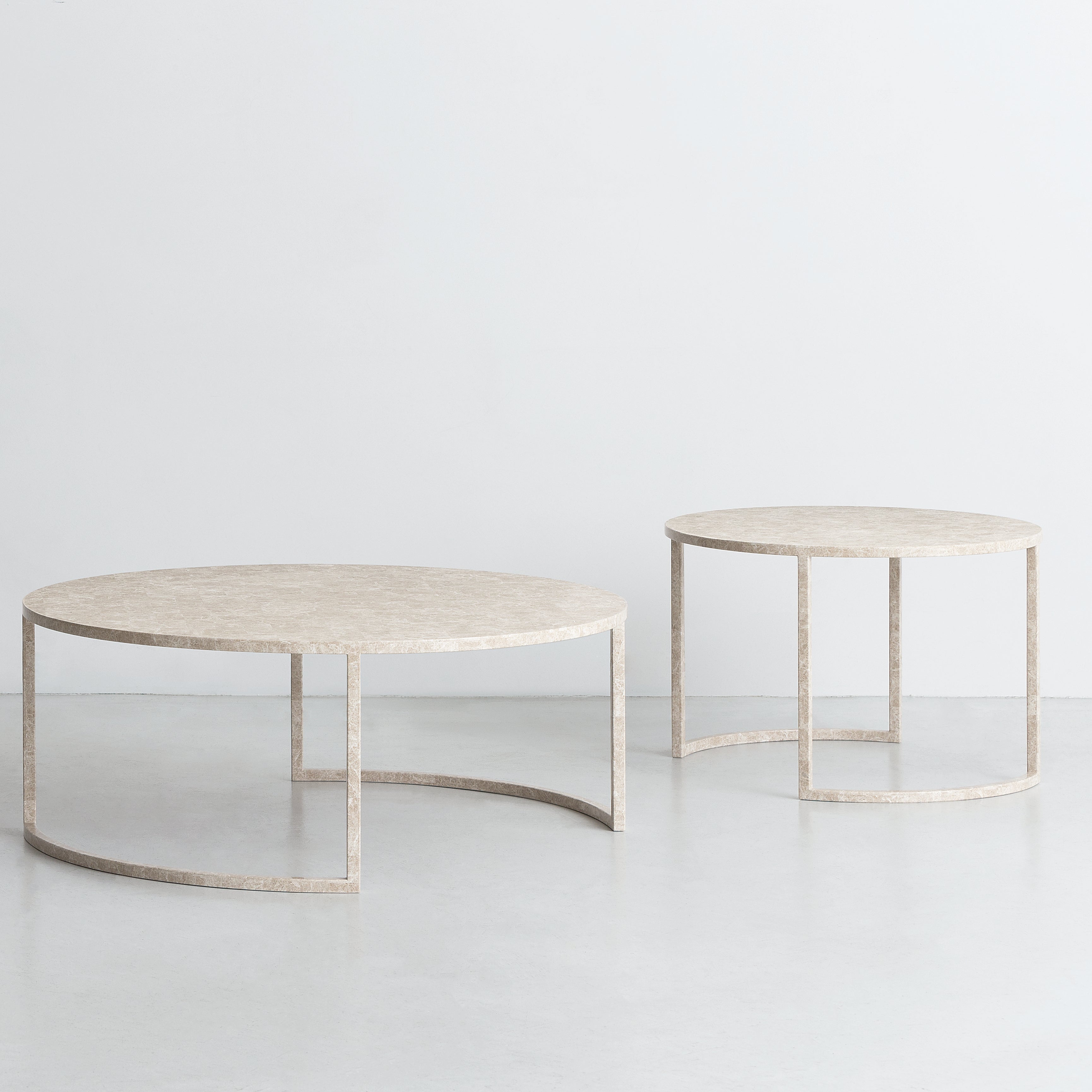 In a stunning round variation, By Interiors adds to its collection of allover marble tables with an unbelievably slim profile. Skilled craftsmanship underlies BK’s geometric proportions, rendered in the inlaid stone with an architectural steel frame. Available in 2 heights with differing tabletop dimensions to deploy singly or in a pair, it comes in milky Carrara, black Marquina Nero or honeyed Emperador marble selections.