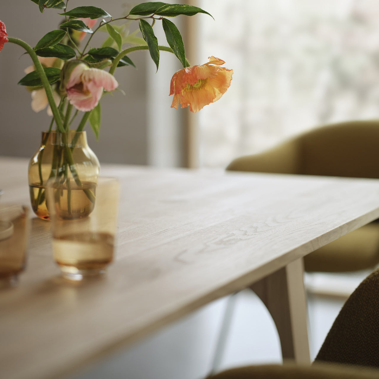 The Earnest Extendable Table is designed with sculptural arched legs and a clean-lined profile, offering both functionality and a refined silhouette. Crafted from FSC™-certified solid oak, treated with clear or dark oil, it extends easily using manual apron pulls and a secure lock, maintaining its shape while accommodating additional guests. The optional extension leaves feature contrasting wood grains, adding a unique detail.