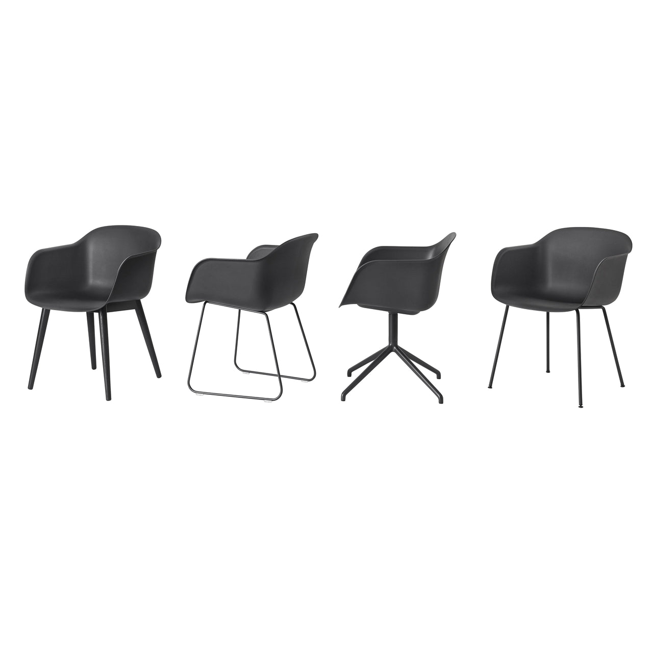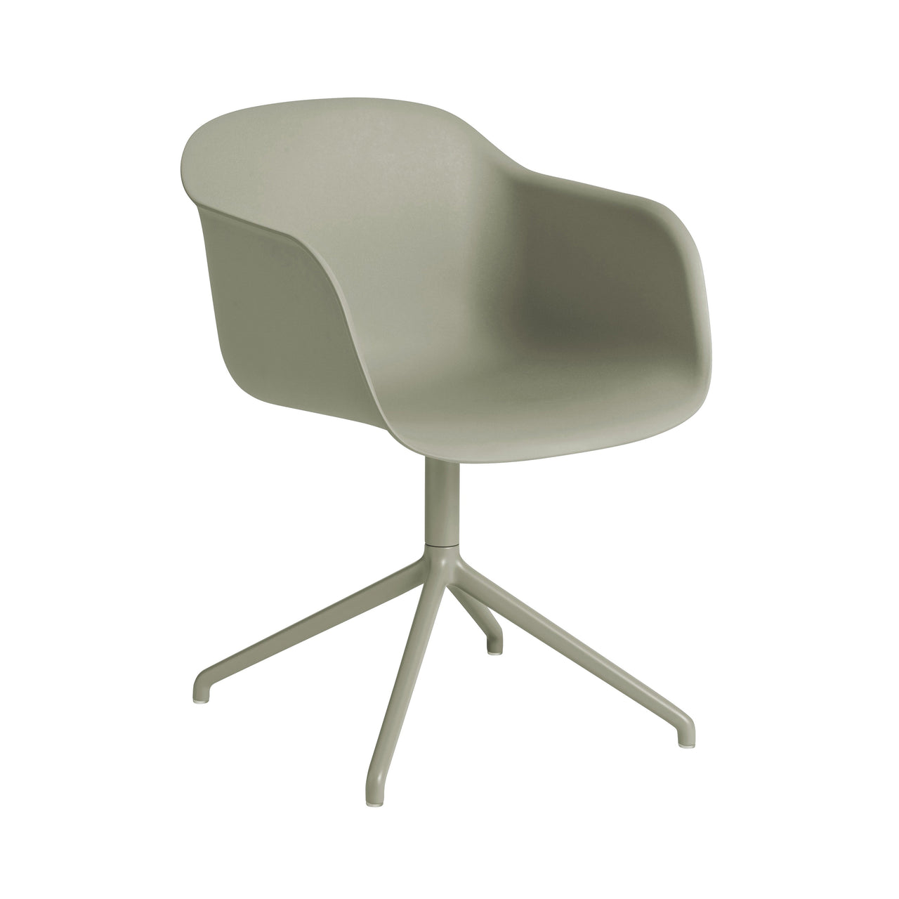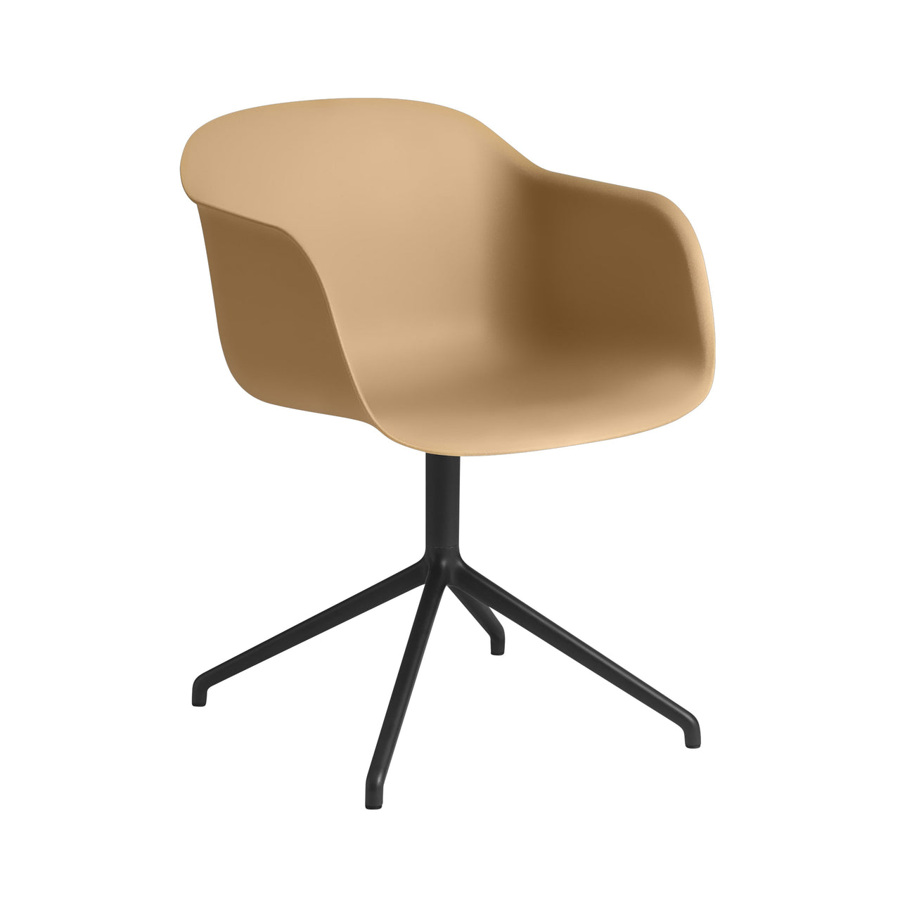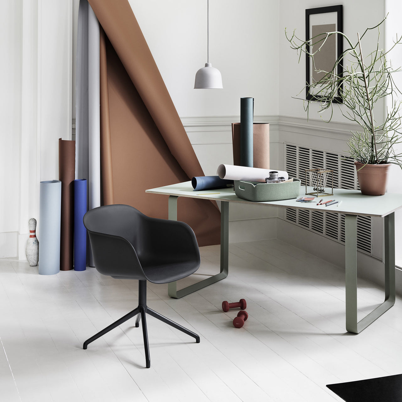 Aiming for "design without eccentricity," Muuto's Fiber Chair from Copenhagen-based design duo Iskos-Berlin takes to a number of variations—here with a swivel base that's especially suited to a desk or table. Priorities were clear: seating with a strong identity, adaptable to many interiors and, most importantly, exhibiting a "clear sculptural language that refuses to compromise on comfort." Reworking the classic molded shell chair—with back, seat and armrests all in one—was the preferred route. Made in an innovative composite of plastic and wood fibers, the material has a textured matte surface and soft inviting touch.