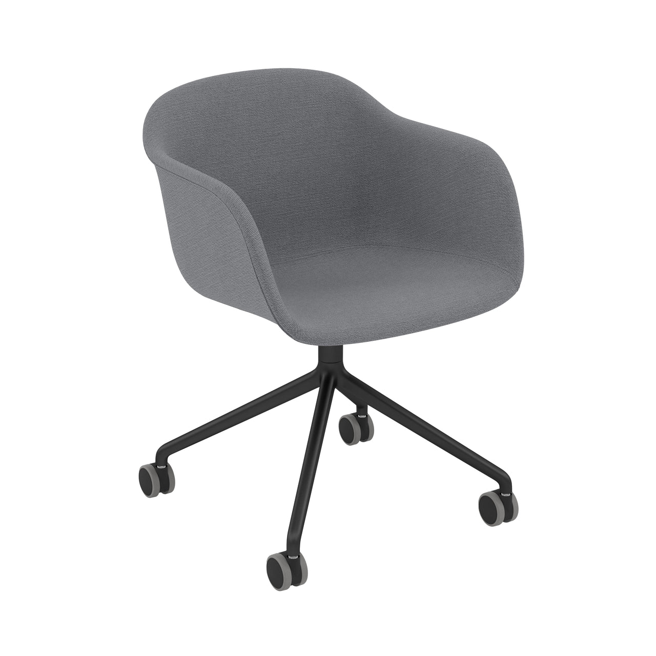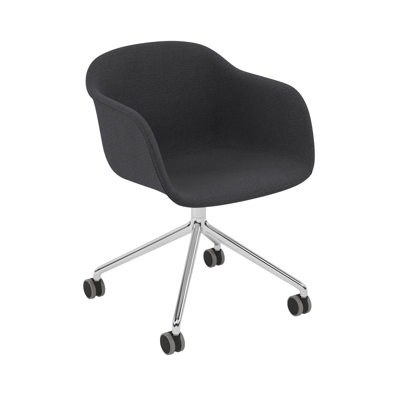 Fiber Armchair: Swivel Base with Castors + Recycled Shell + Upholstered + Anthracite Black + Black