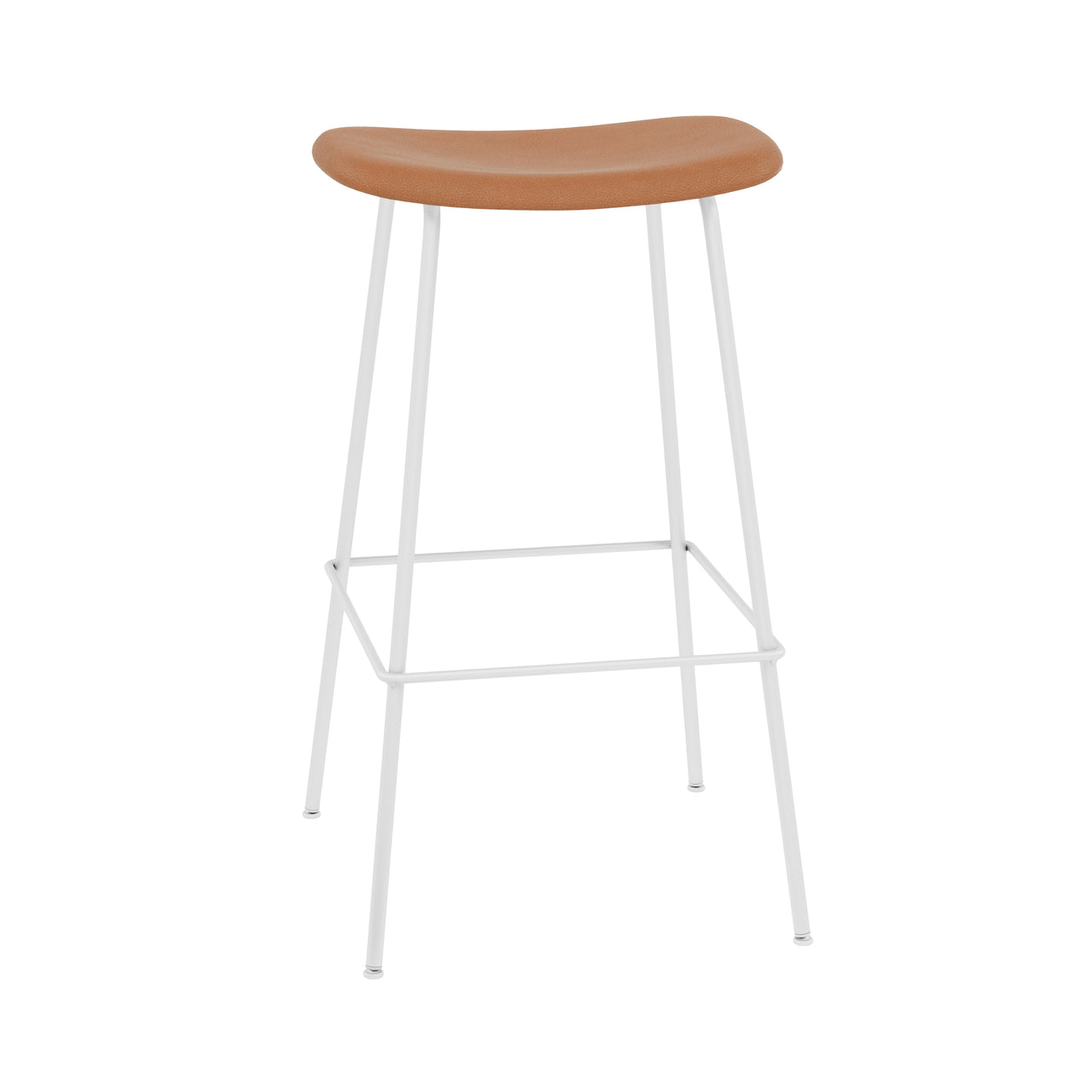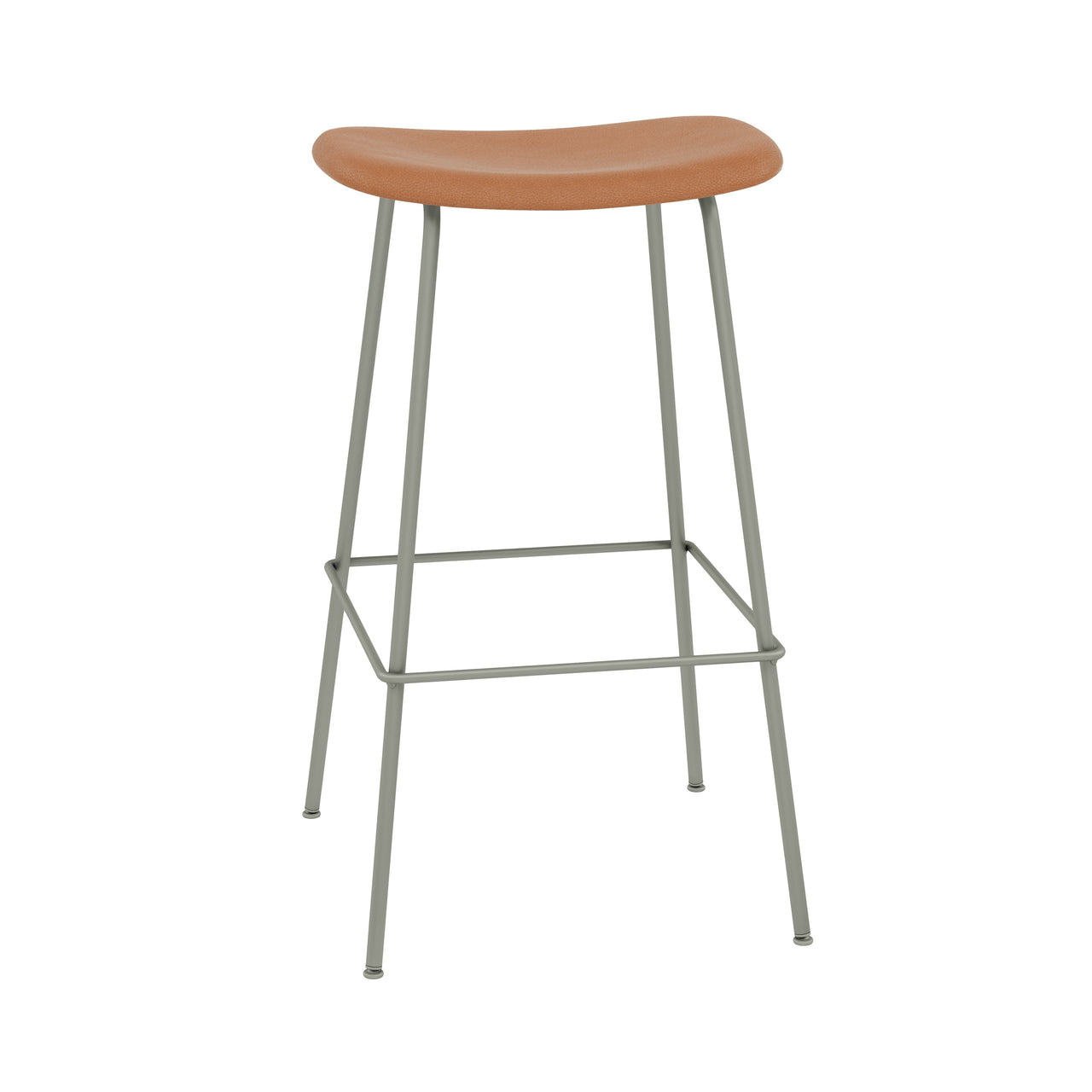 Rich leather or a premium textile provides a luxe overlay for the molded seat of Danish brand Muuto's upholstered barstool from its signature Fiber series. Designers Iskos-Berlin have updated the notion of classic Scandinavian shell seating with an inventive plastic composite made with 25 percent wood fibers. In either bar or counter height, Fiber's tube base crafted in powder-coated steel is available in black, white or grey to harmonize with the chosen upholstery.