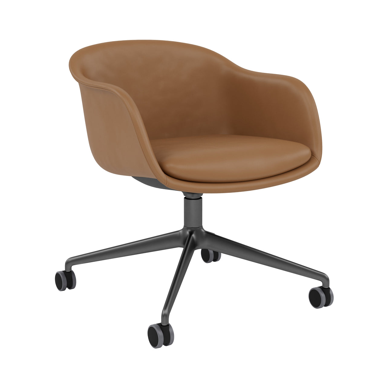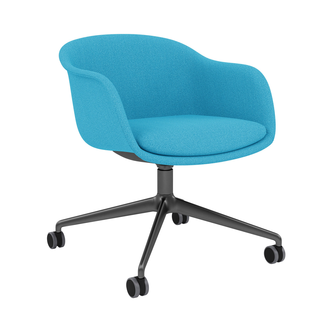 Muuto expands on the Fiber series of sculptural yet distinctly ergonomic seating from Copenhagen-based design duo Iskos-Berlin with a work-oriented version set on a swivel base with castors. Fiber Conference Armchair's built-in comfort makes it ideal in any setting for extended time spent seated, with its embracing interior shell made of 99% recycled plastic. The spacious seat and user-friendly contours are fully upholstered with a soft fixed cushion to suit public spaces and the home alike.