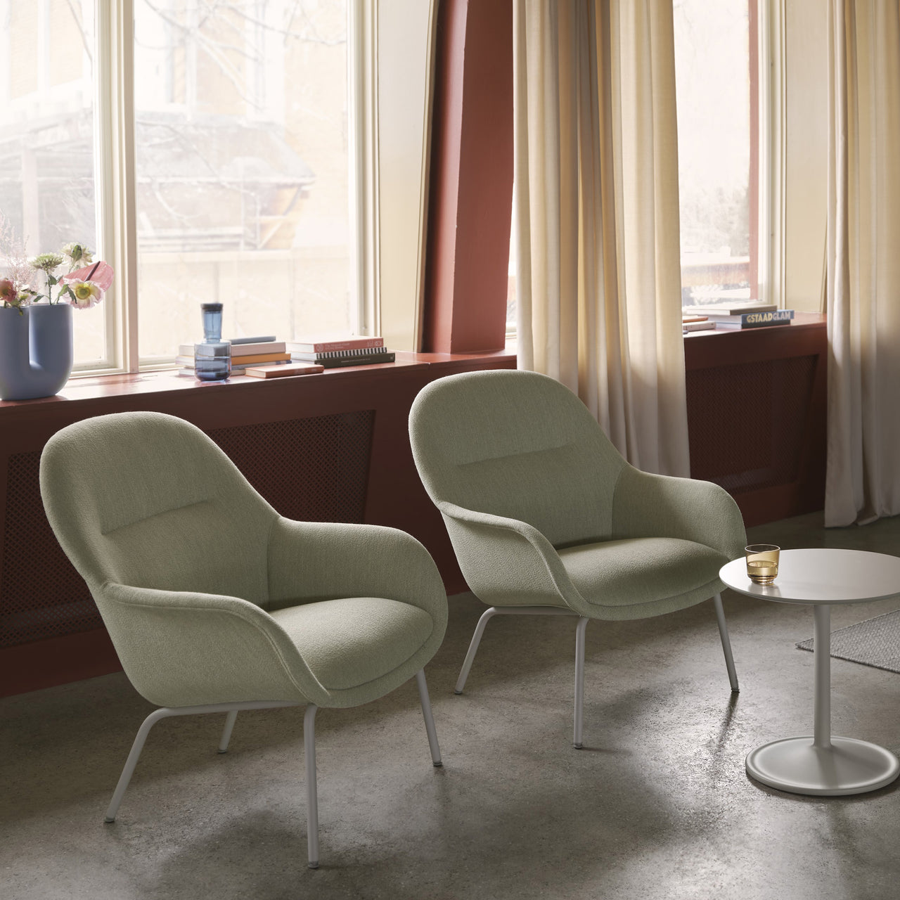The Muuto Fiber Lounge Armchair with Tube Base features a wide, low-profile seat and a gently curved shell, designed to offer a relaxed and comfortable seating experience. The shell is made from 100% recycled plastic, reinforced with strength-enhancing additives and up to 25% wood fibers, giving it a matte texture and soft touch. The chair's sculptural simplicity is highlighted by its powder-coated steel tube base. Available in a range of upholstery options, including textiles and leather, it adds a refined touch to both home and public spaces.