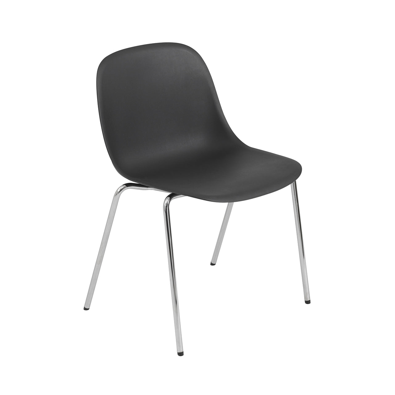 Fiber brings a new perspective to the iconic Scandi shell chair through its innovative composite of recycled plastic (min. 80% recycled) and FSC-certified wood fibers. The natural fibers blend into the surface for a matte finish and add a soft, inviting touch to its friendly, embracing curves that provide extensive comfort. Side chair with chrome legs and glides stackable up to 15 units.