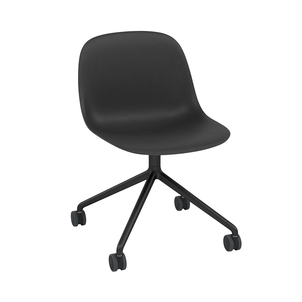 Fiber Side Chair: Swivel Base with Castors + Recycled Shell + Anthracite Black + Black + Black