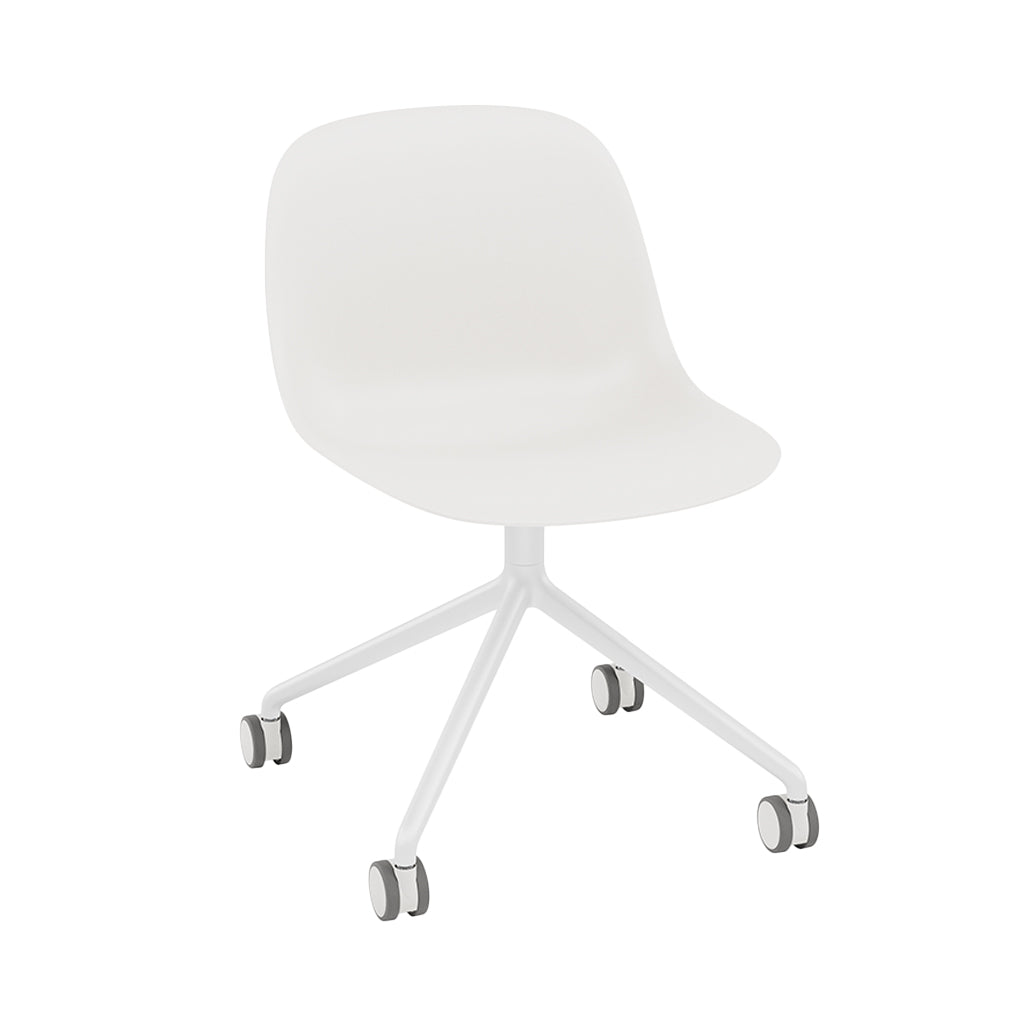 Fiber Side Chair: Swivel Base with Castors + Recycled Shell + White + Natural White