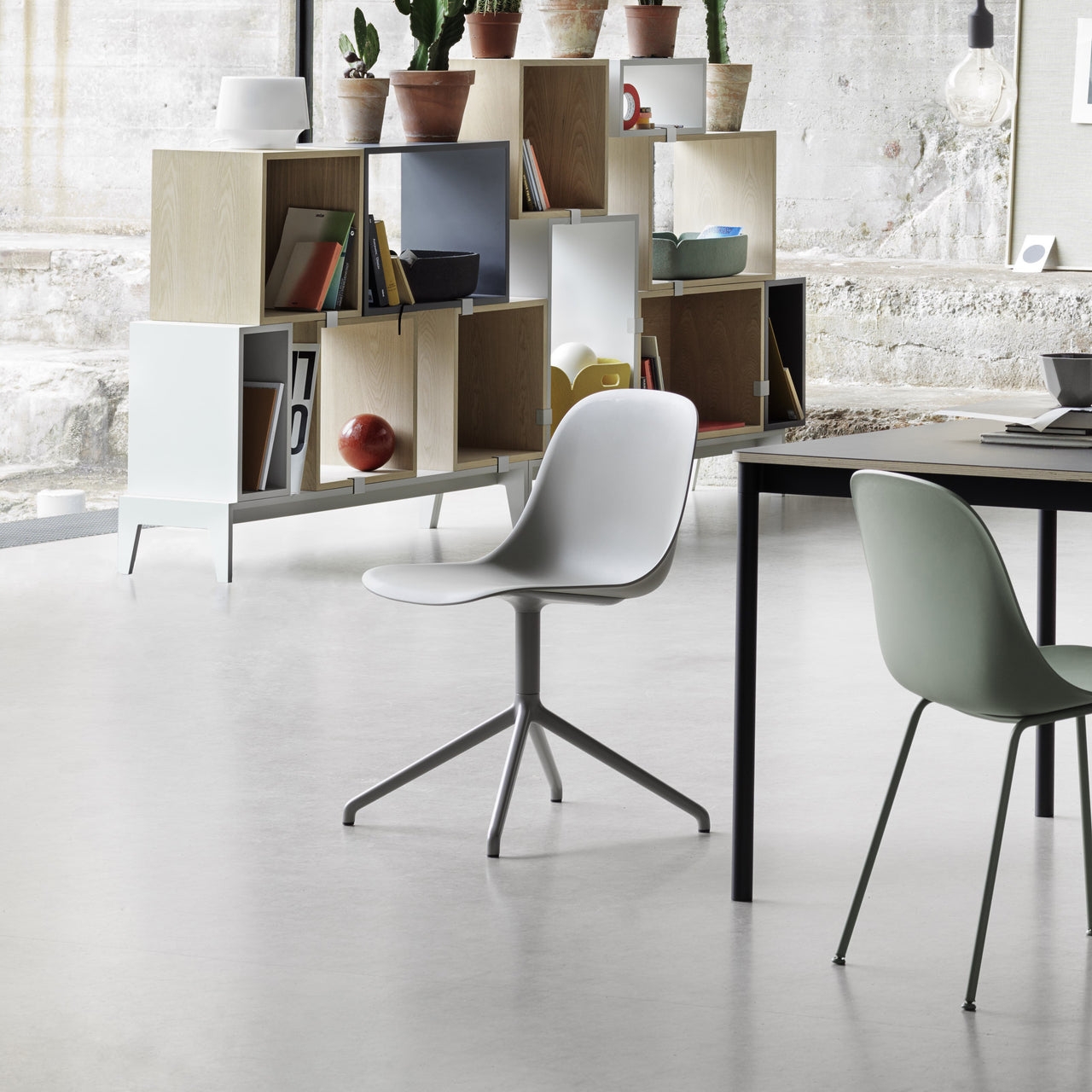 Muuto's uber-comfortable side chair upgrades the workday in a version with convenient automatic seat return. Made from an innovative composite plastic with 25% wood content, Fiber offers ergonomic support as well as handy maneuverability at the desk or conference table. Design duo Iskos-Berlin creates the striking molded seating in a range of colors with an appealing matte look and smooth touch, paired with the polished aluminum base in select finishes.