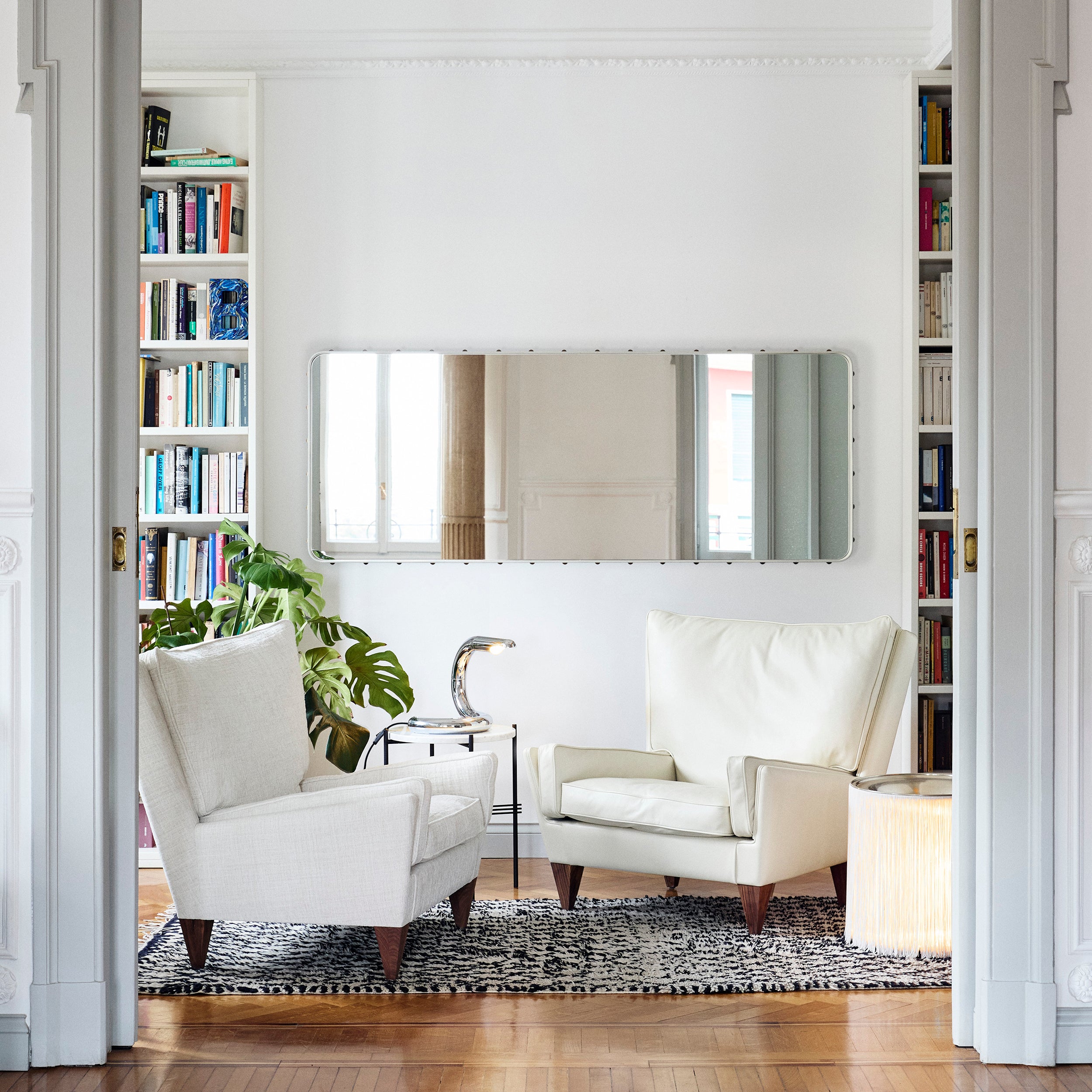 Designer icon extraordinaire Jaques Adnet first teamed with a top ‘50s Paris couturier for his Adnet Rectangulaire Mirror. Calling on the savoir-faire of the fashion world assured the quality and refinement of the leather-framed mirror studded with burnished brass rivets on the edges, a characteristic detailing of Adnet's work. In 3 sizes, the mirror can be hung either horizontally or vertically or even be spontaneously leaned against a wall, adding depth and allure to any surroundings.