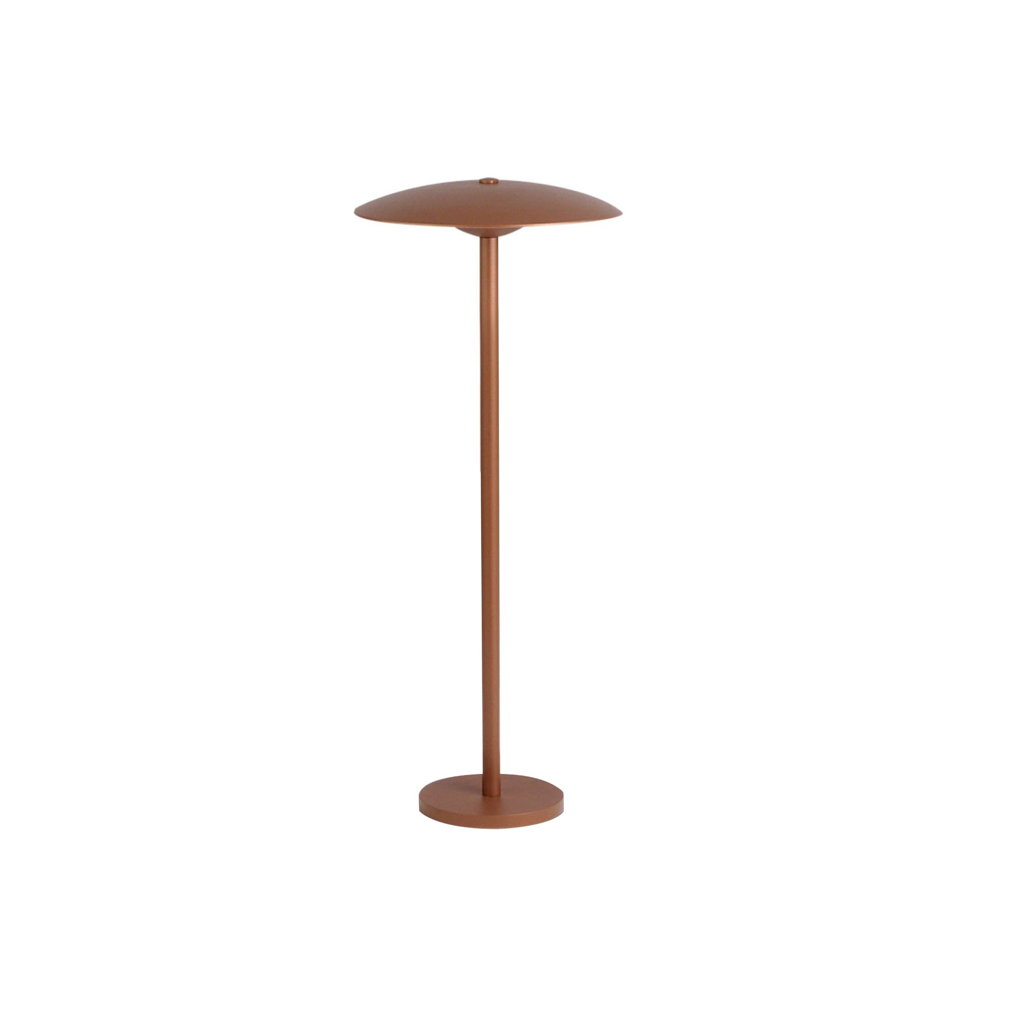 One of Barcelona-based lighting brand Marset's star players, Ginger is moving outdoors with small bollard lamps, raised by a post to light patios and pathways. Available in black or rust brown, the lacquered aluminum structure features a reflective white diffuser to spread the illumination from an LED bulb. Available in 3 different heights, the matte finish and minimal profile are an apt complement to a variety of alfresco settings.