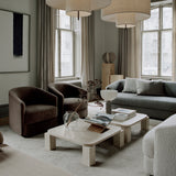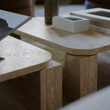 Named after the mythical Titan condemned to hold up the heavens on his shoulders, Atlas reveals equally muscular legs supporting its spacious square surface. In Costa Black marble or natural unfilled travertine, designer John Astbury’s coffee table comes in 2 sizes, to feature singly or complement each other when used together.