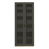 Asplund's handsomely tall storage cabinet comes with clear glass doors for hiding clutter or making a display of things. Considered a Swedish design classic, Thomas Sandell and Jonas Bohlin's elegantly simple Snow E was first unveiled in 1994 with its characteristic cutout handles that add both a decorative element and the ease of a comfortable grip. In a choice of select Nordic hues, the cabinet is made of lacquered MDF and has a contrasting natural birch base. It's hand-assembled and made to order in the small town of Tibro in southern Sweden, known for its furniture-making tradition, and meant to last for generations. Assuredly functional on its own, the unit also mixes with other companion Snow pieces; affixing it to the wall is recommended.