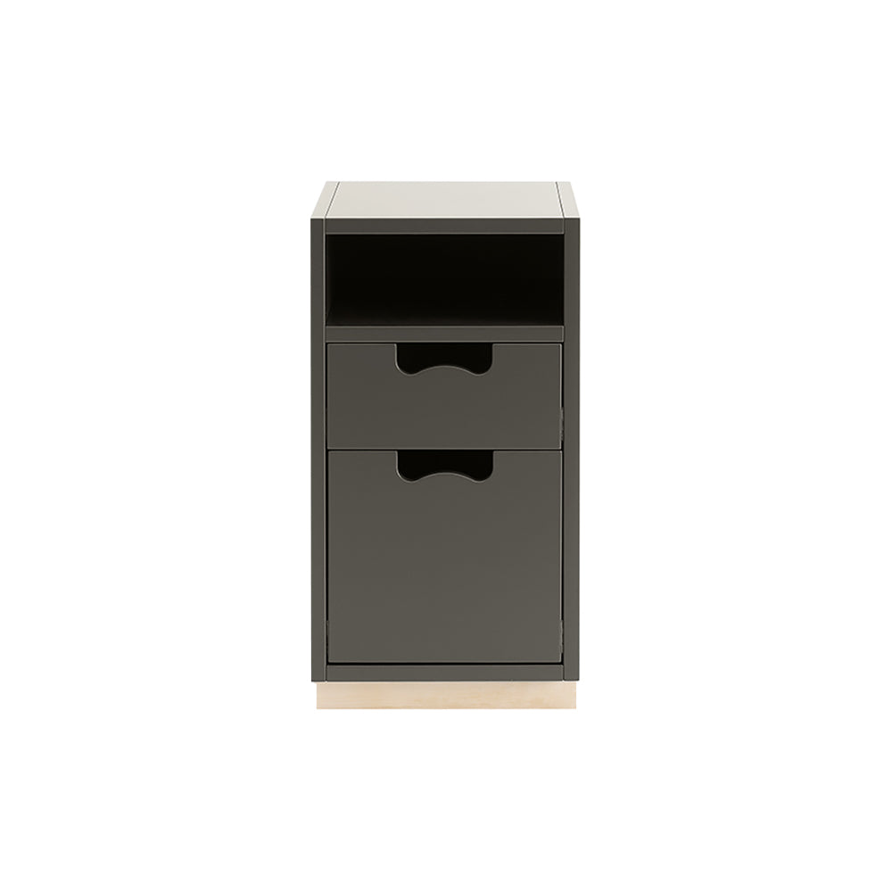 A compact storage piece, Snow G3 is designed with a small drawer, a medium drawer and an open shelf for utmost versatility. From Thomas Sandell and Jonas Bohlin and now considered a Swedish classic, the design features the familiar cutout drawer handles as the sole decorative element (and also functioning as a comfortable grip.) In a choice of soft Nordic hues, the lacquered MDF cabinet has a contrasting natural birch base. Asplund produces the fundamentally handcrafted and made-to-order collection in the small southern Swedish town of Tibro, known for its furniture-making tradition.