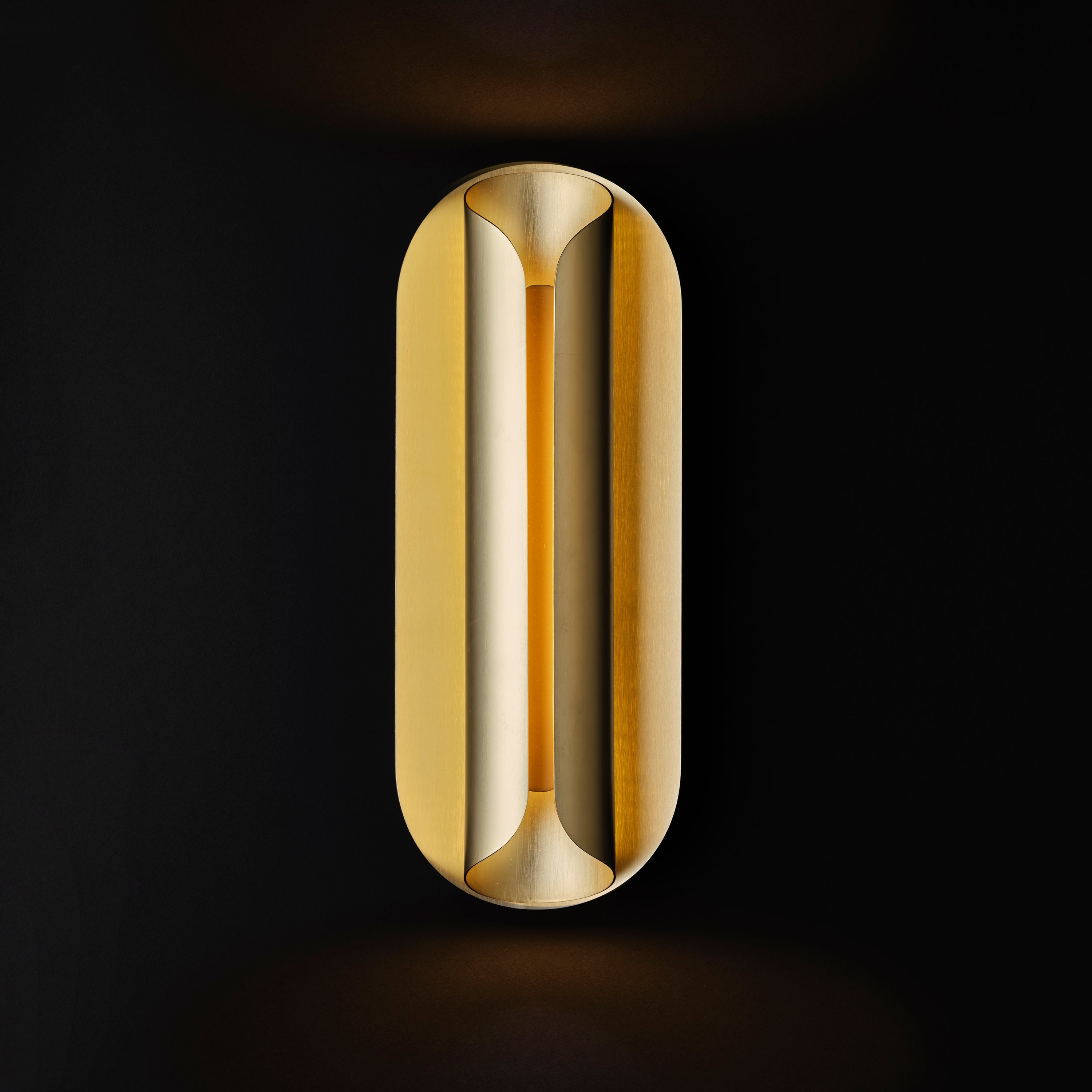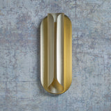 From Paris-based DCW Éditions, Rosalie hails from the studio’s Atmospherics collection, meant to moodily bridge the hours between light and darkness. Created by the architect and designer Julie Fuillet and the lighting wiz Emeric Thiénot, the wall lamp pairs 2 thin aluminum plates with a gilt finish. One is rolled up to diffuse the light from its integrated LED inside, relaying a warm and reassuring golden glow.