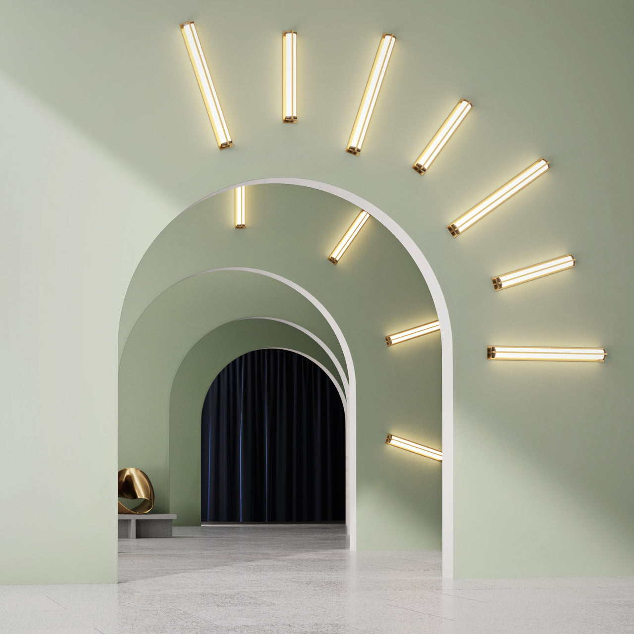 The cylindrical motif of the Metropolis lighting collection from Brooklyn's Juniper Design makes for a striking wall sconce variation. Created in collaboration with designer David Meckley, the low-profile brass backplate is unique to the sconce and allows vertical and horizontal mounting. The high-output LED is available with or without a mesh overlay and is fully dimmable and accommodates indirect control.