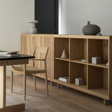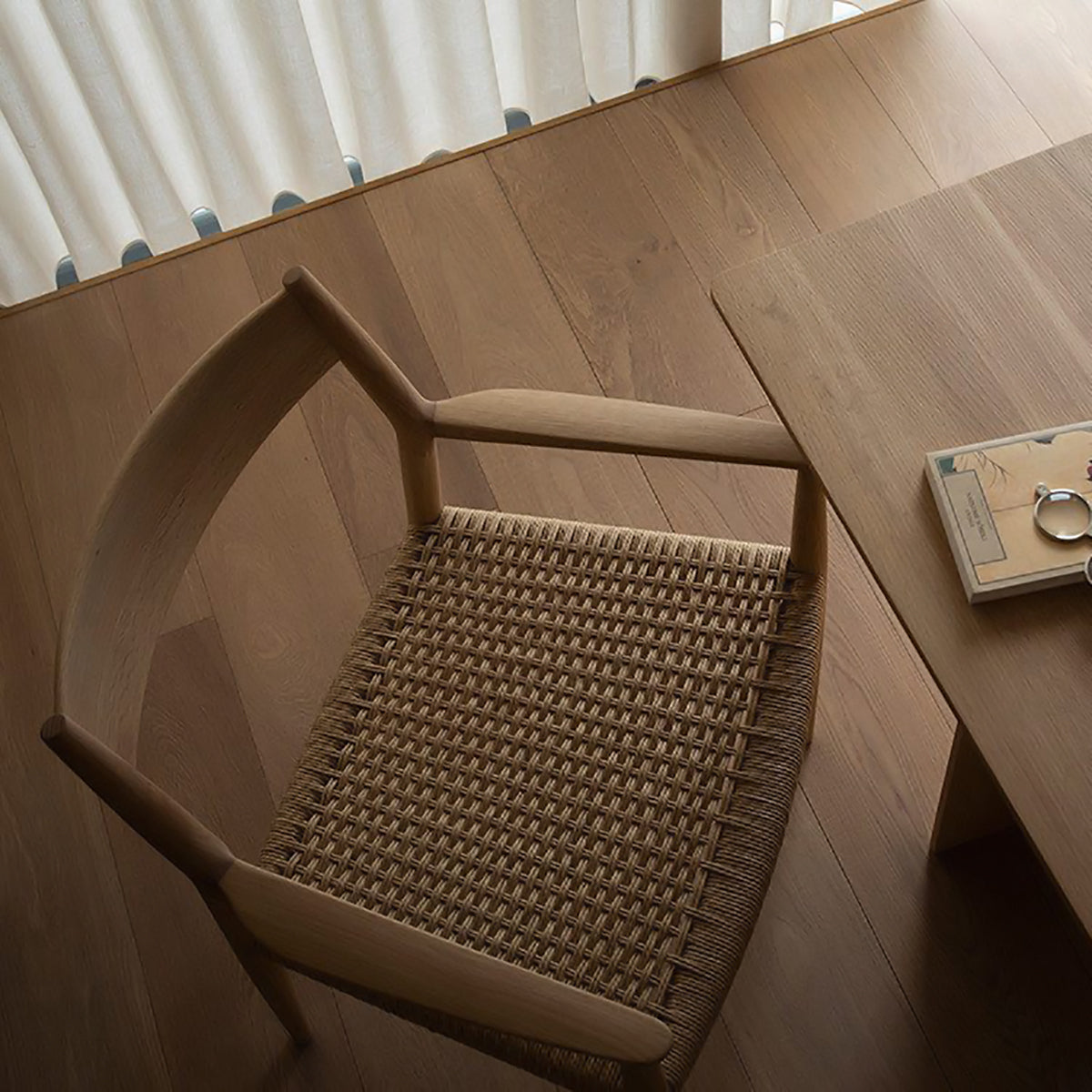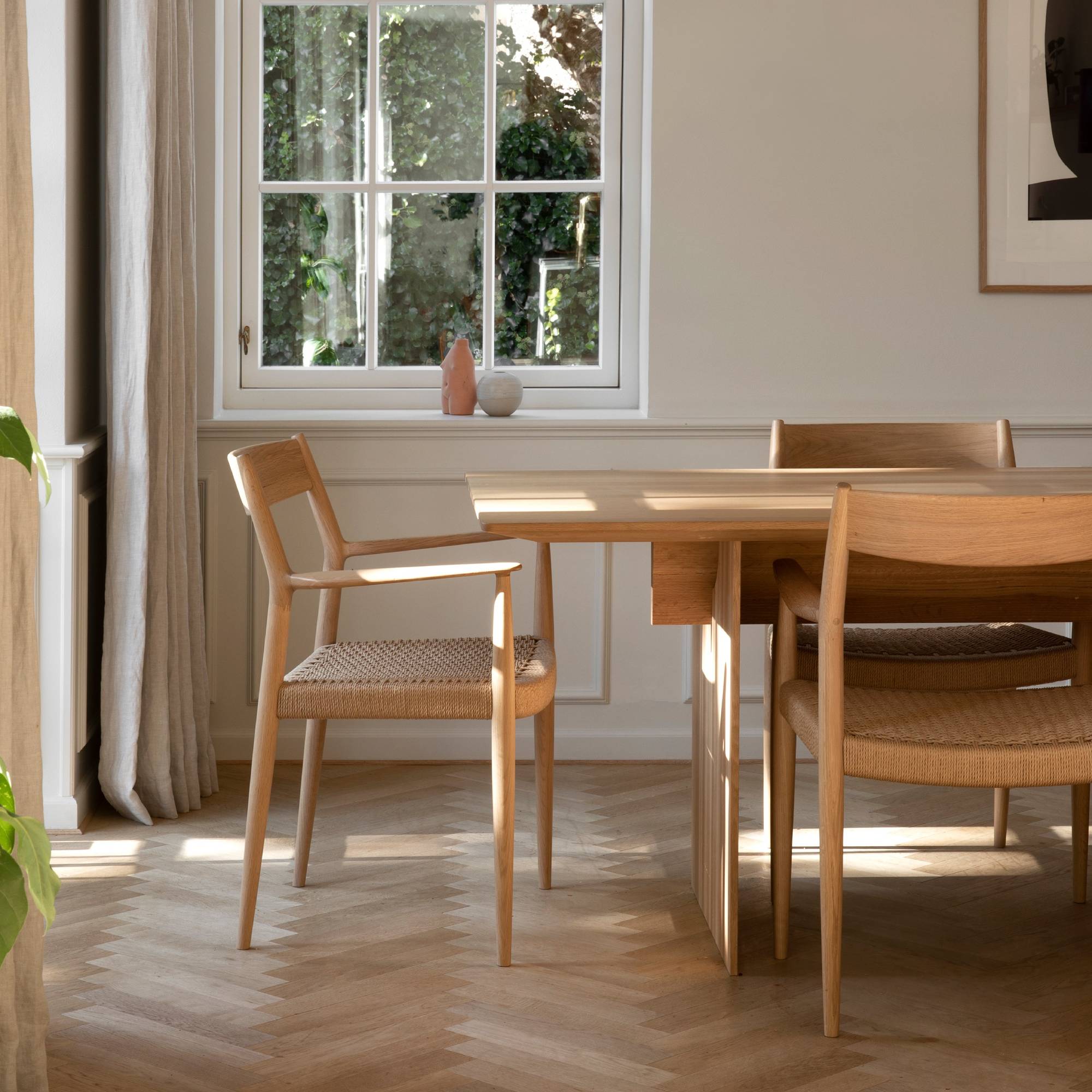 Karimoku Case and Norm Architects team up for a handsome solid-oak armchair with a seat in fine woven paper cord. Working together to renovate the interiors of Tokyo’s landmark ‘80s Kinuta Terrace apartment, the seating was designed with a welcoming simplicity. Reflecting the airy feeling of the courtyard-adjacent project, the armchair is beautifully detailed with turned legs and a rounded backrest, set off by the rich woodgrain.