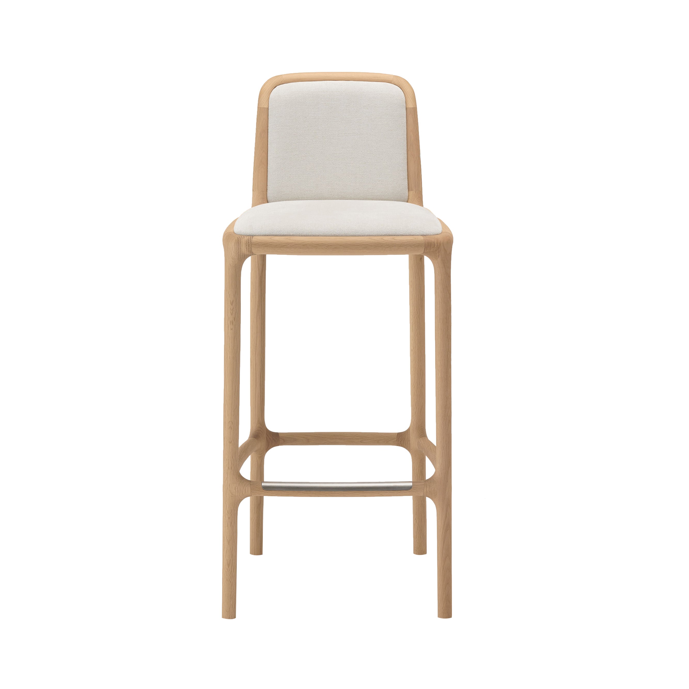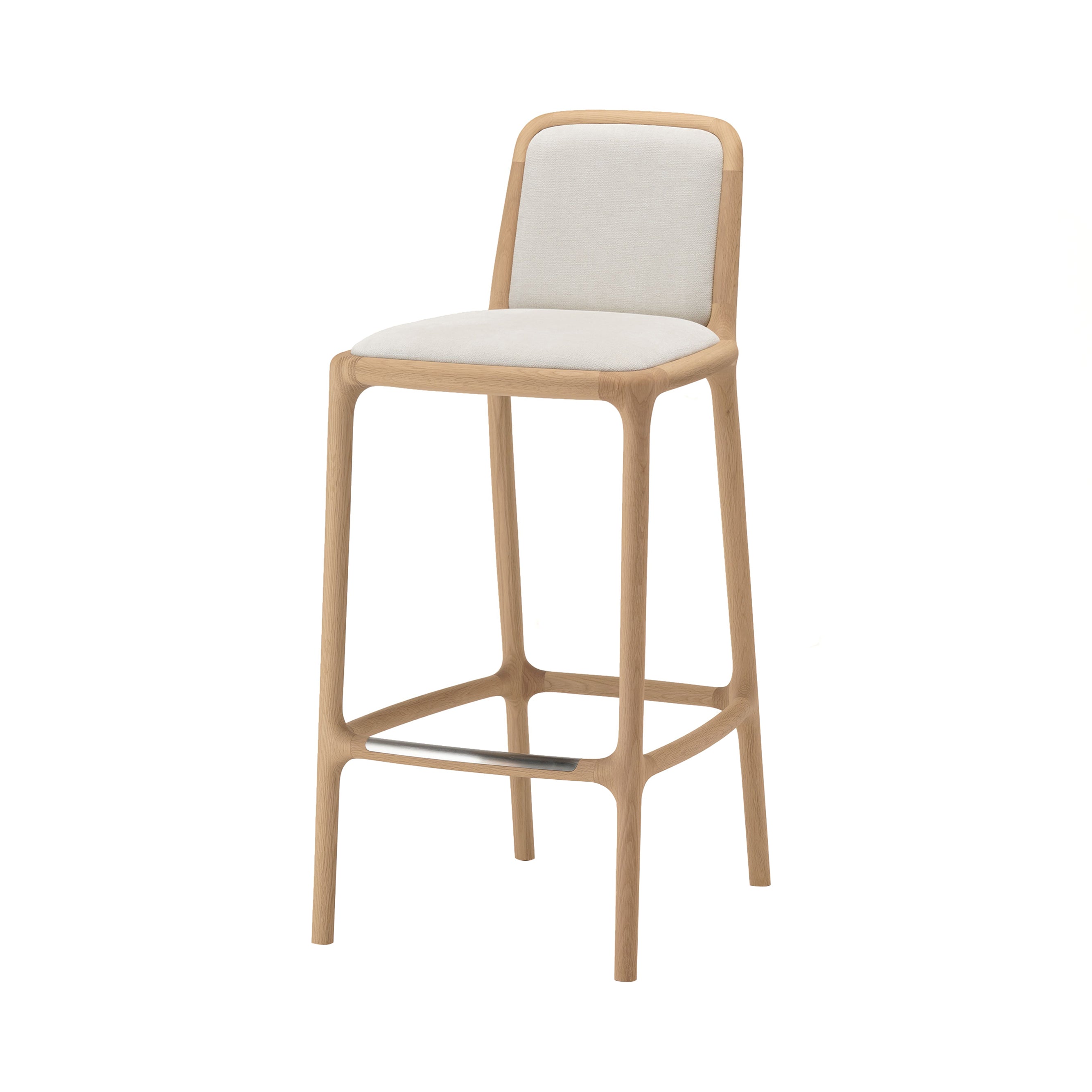 Karimoku Case's collection of tailor-made furniture pieces by internationally acclaimed architect Norman Foster includes a high-back stool to accommodate a range of domestic activities. Providing extra support and comfort while maintaining the distinctive design language of the NF range, the stool is characterized by its fully upholstered form and tapering timber frame that imparts an elegant stance.