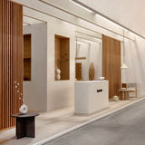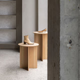 Originating in Copenhagen’s Notabene shoe store, Karimoku Case's side table exhibits refined Japanese cabinet-making that echoes the art and precision of the shoemaking process itself. The subtle cut-out in the rounded tabletop, a characteristic feature of the N-ST02, indicates direction and further emphasizes the materiality and warmth of the oak construction. Norm Architects' once-bespoke design for the holistic retail flagship now adds its finesse to a wider range of interiors.