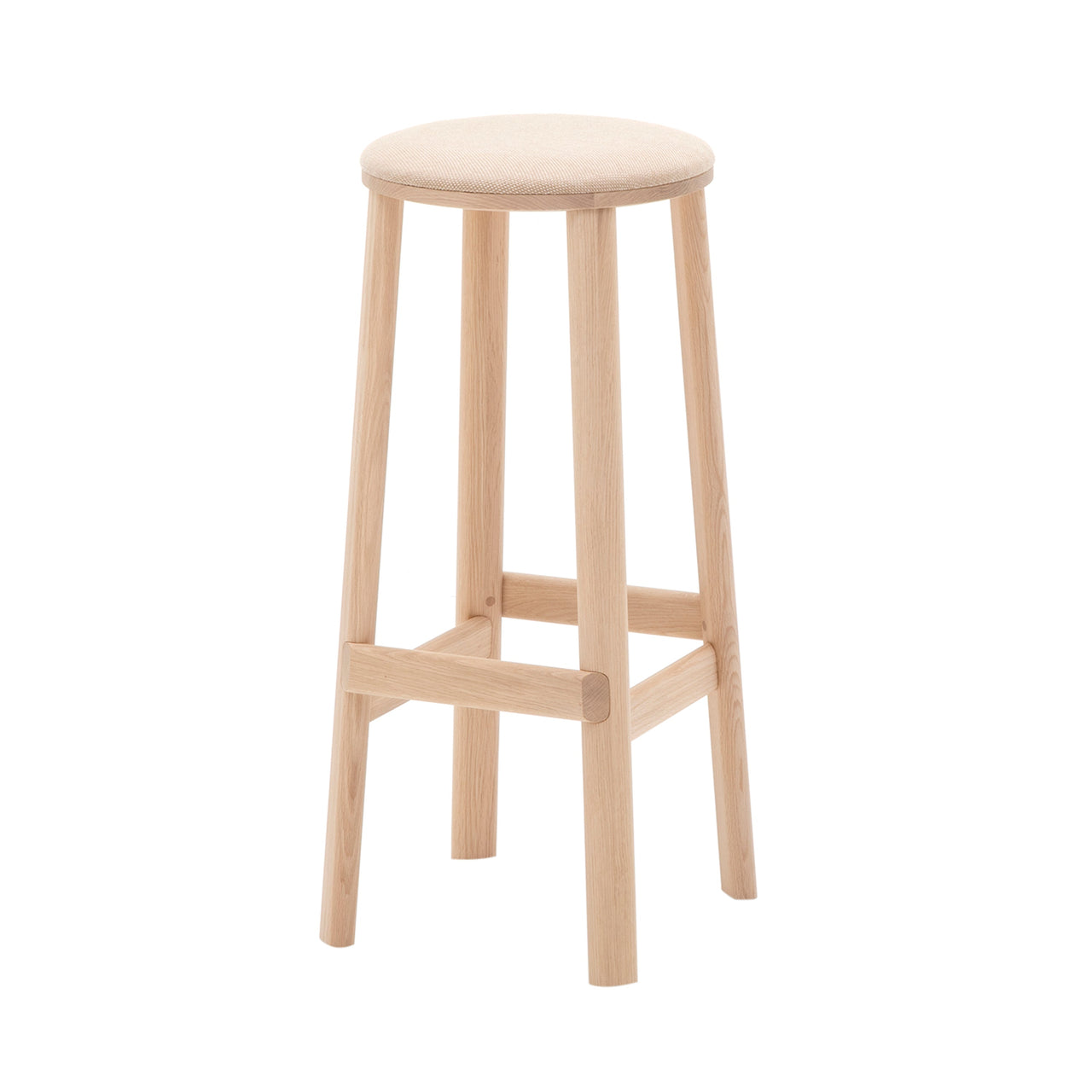 The Archive Bar + Counter Stool, designed by Christian Haas, is inspired by traditional Japanese carpentry, featuring precise joints and soft, tactile surfaces. Constructed from sustainably sourced Japanese oak, the stools are available in black or pure oak finishes and have a padded seat for added comfort.
