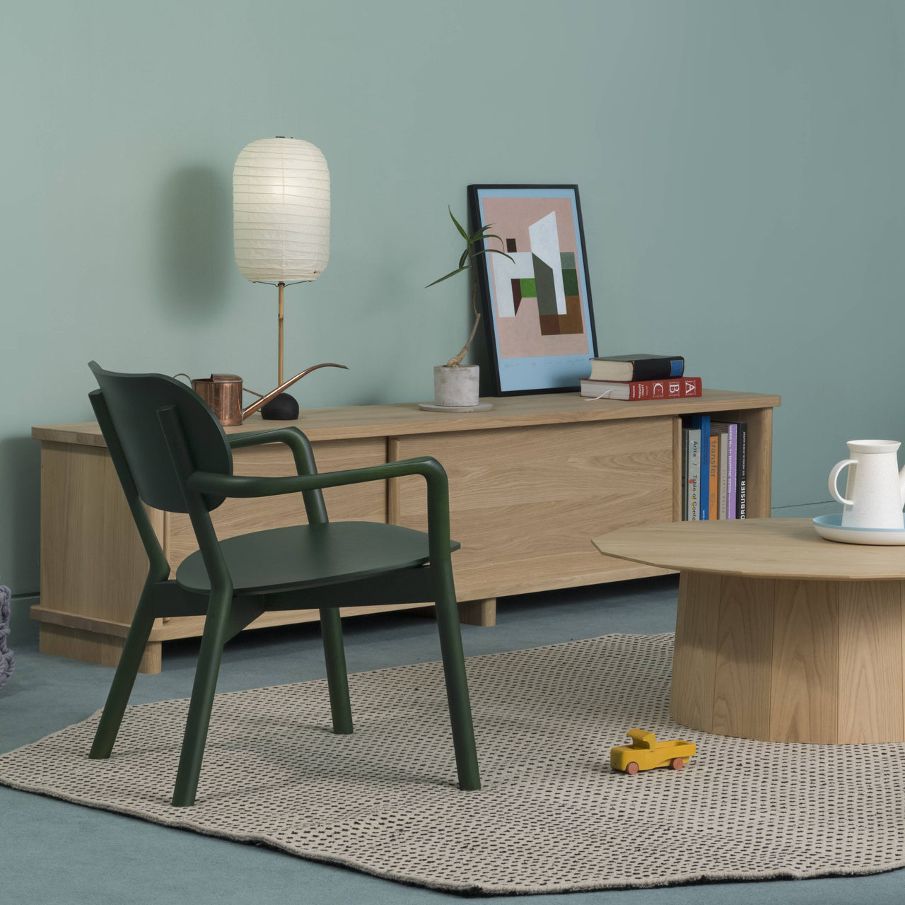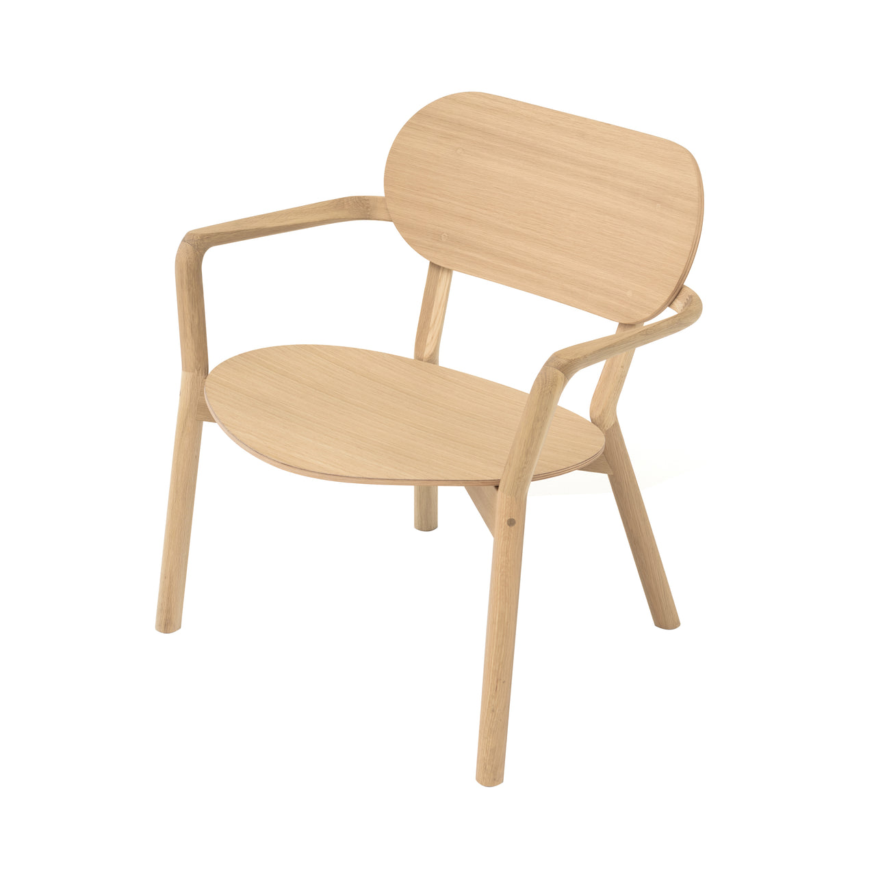 Light, compact and calibrated for comfort, the low seat and wide backrest of Karimoku New Standard's signature Castor Chair extends an open invitation to relax. A respect for classic design and innovative craftsmanship are shared values between the Japanese heritage brand and the Swiss design trio behind the Castor Collection, Big-Game. Eco-conscious production dictates the selection of hardwood from long underused low-diameter tress to preserve and revitalize Japanese forests. A transparent finish accentuates the texture of the sturdy oak wood in a range of shades.