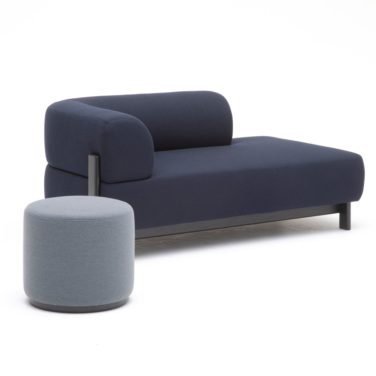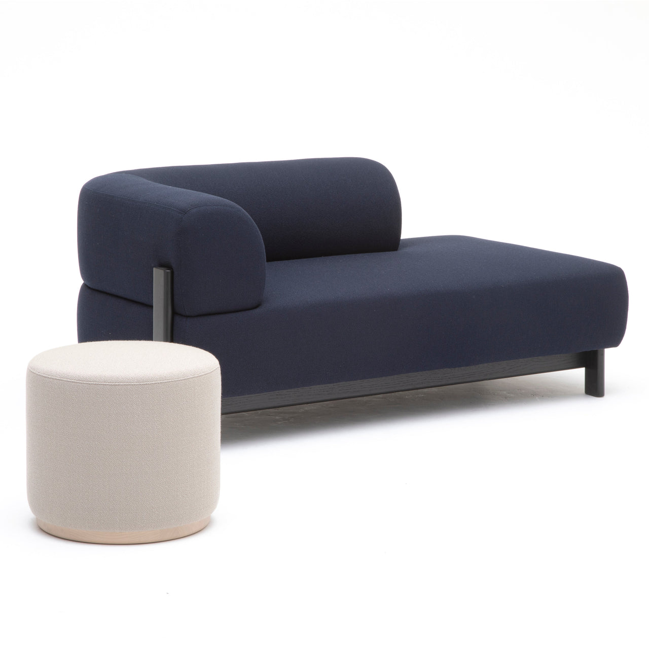 Christian Haasâ upholstered Elephant ottoman comes in a lower model to pair with lounge-level seating or a sofa table. The rounded form reads as a modern classic, with a firm but comfortable surface from its durable pocket-spring core cushioned with high-quality foam. Both the frame and visible base are made of sustainably grown solid Japanese chestnut in a choice of natural or black.