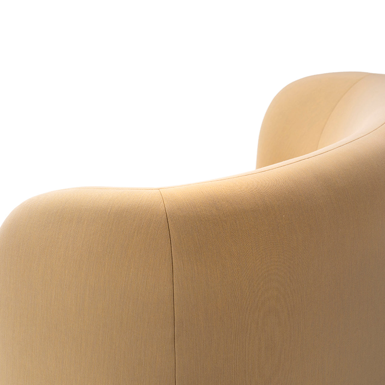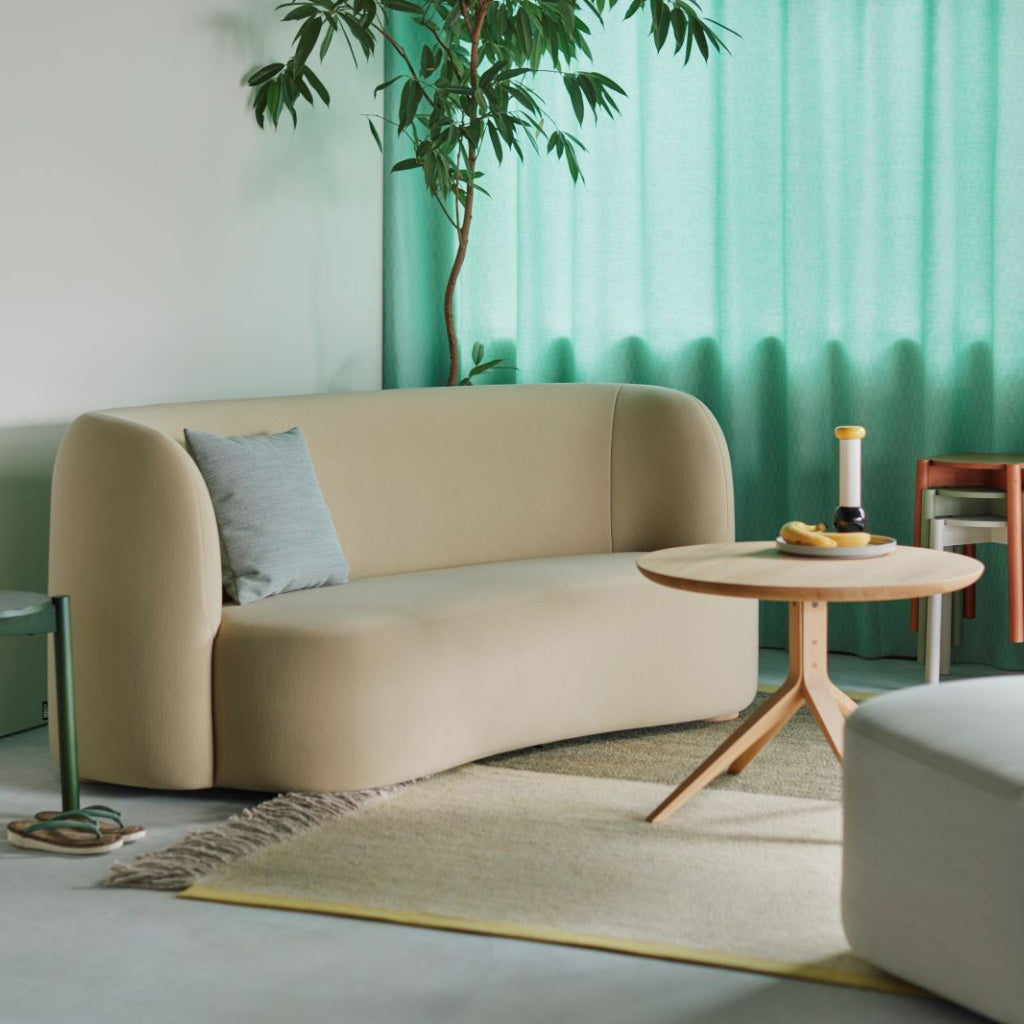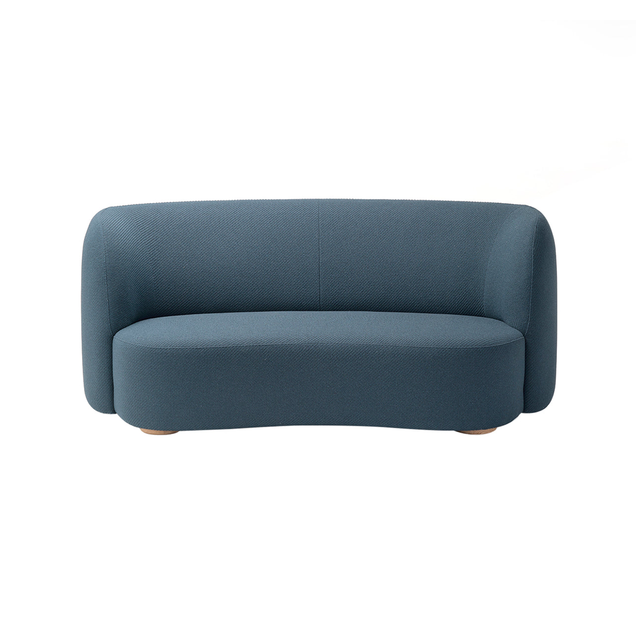 This 2-seater sofa, developed from the Polar Lounge Chair, continues the minimalistic design with its oversized, round, and soft shapes. Its broad curvature and elegant backside allow it to be positioned freely in a space, while the rounded armrests offer comfort for both upright and relaxed seating. The feet are crafted from sustainably sourced Japanese oak. Available in a variety of high-performance fabrics.