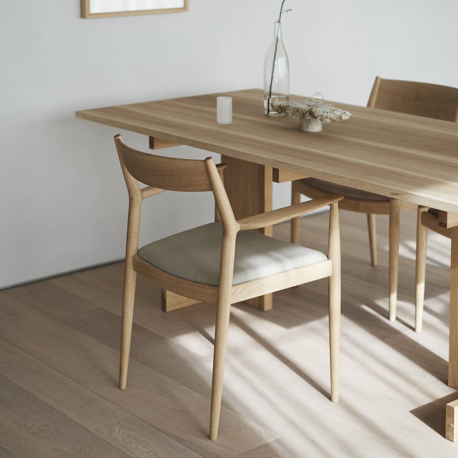 Much like a piece of architecture, Keiji Ashizawa’s dining table offers a view of intriguing angles and broad planes. Faultlessly crafted in solid oak, in a choice of natural or smoked finish, Kinuta has a stately air that makes it a natural focal point. Its clean geometry clearly links it to the midcentury structures in Tokyo that were the inspiration for Karamoku’s collaboration with Keija's studio.