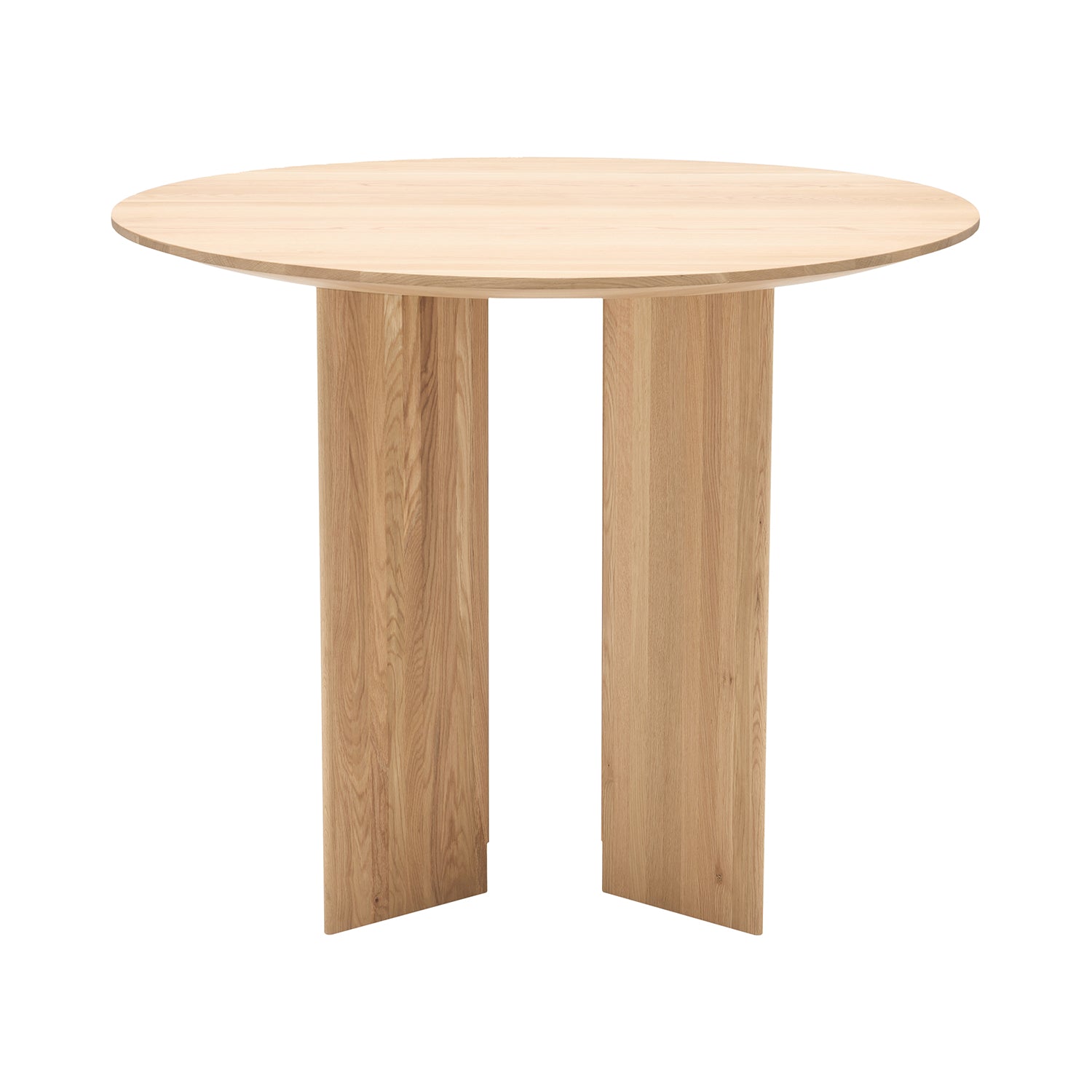 The gently tapered edges of both the tabletop and supports introduce a sense of lightness, balancing the table’s substantial form. Made from solid oak and available in finishes natural, smoked, or matte black, it integrates with a wide range of interiors without overpowering the surrounding elements.