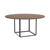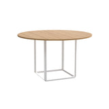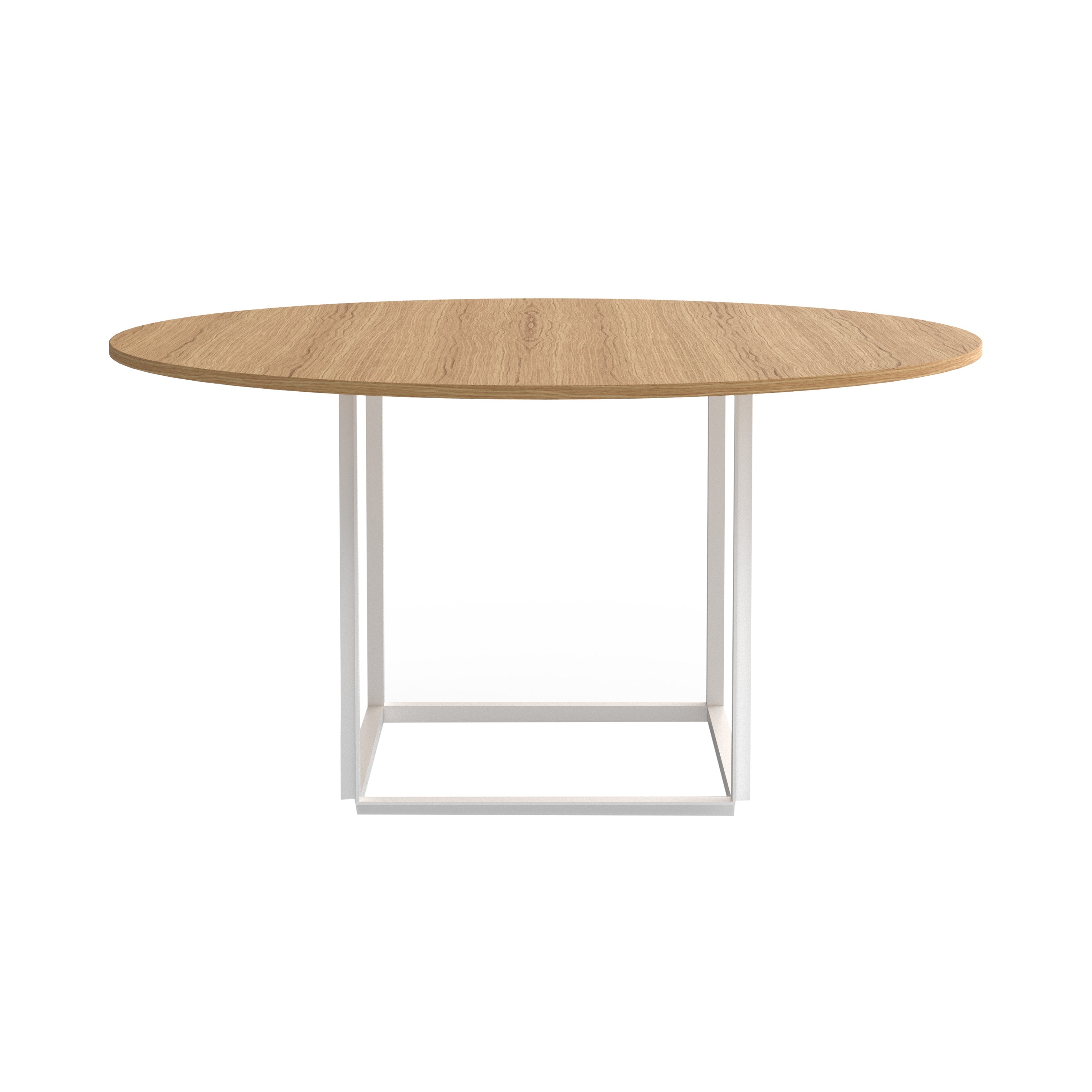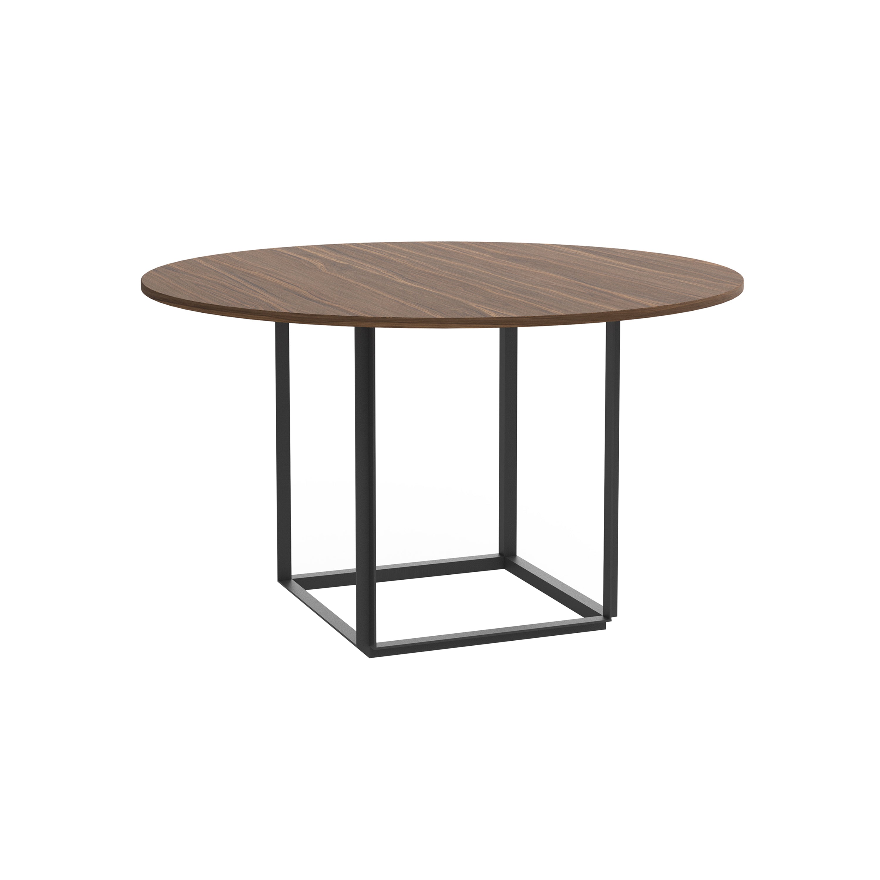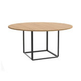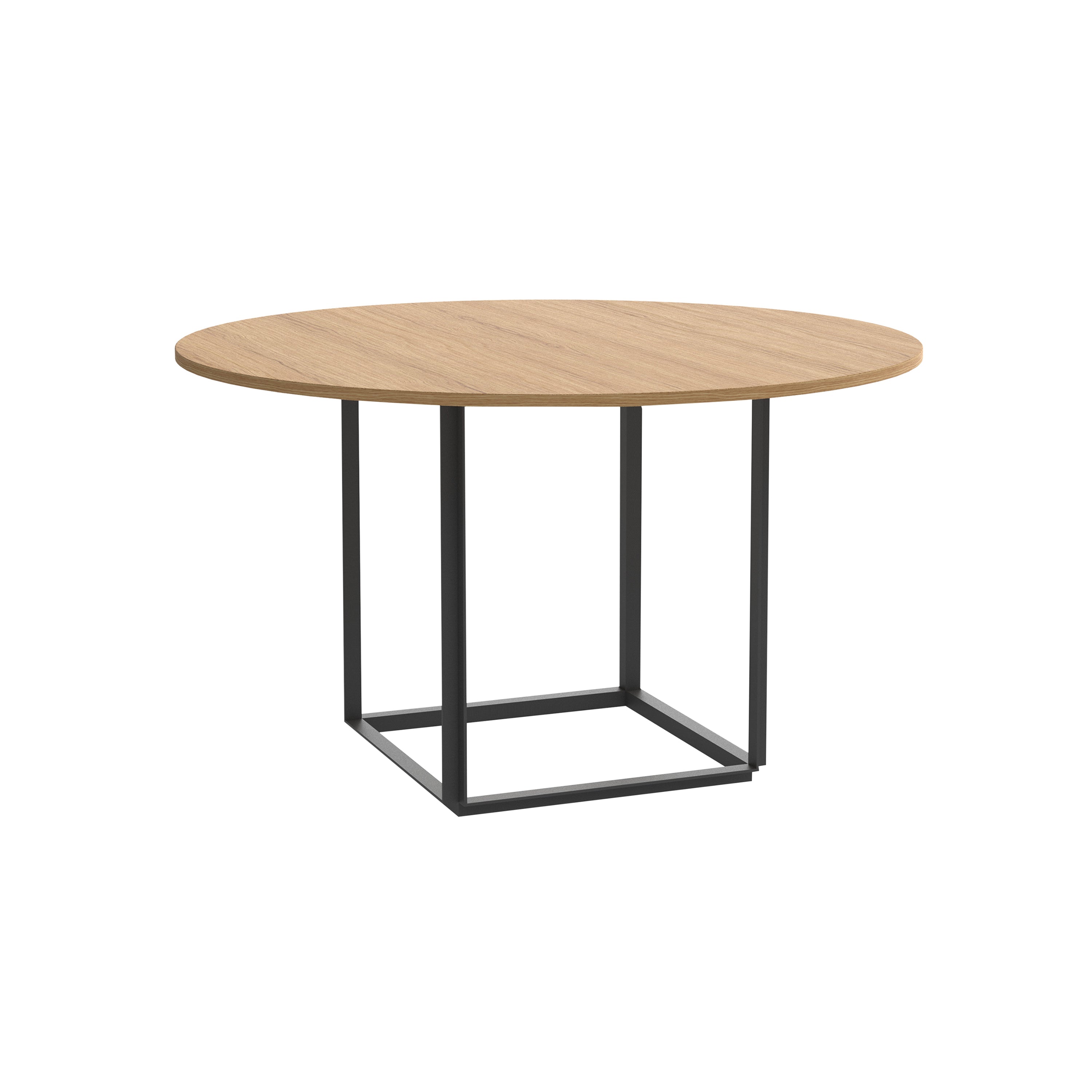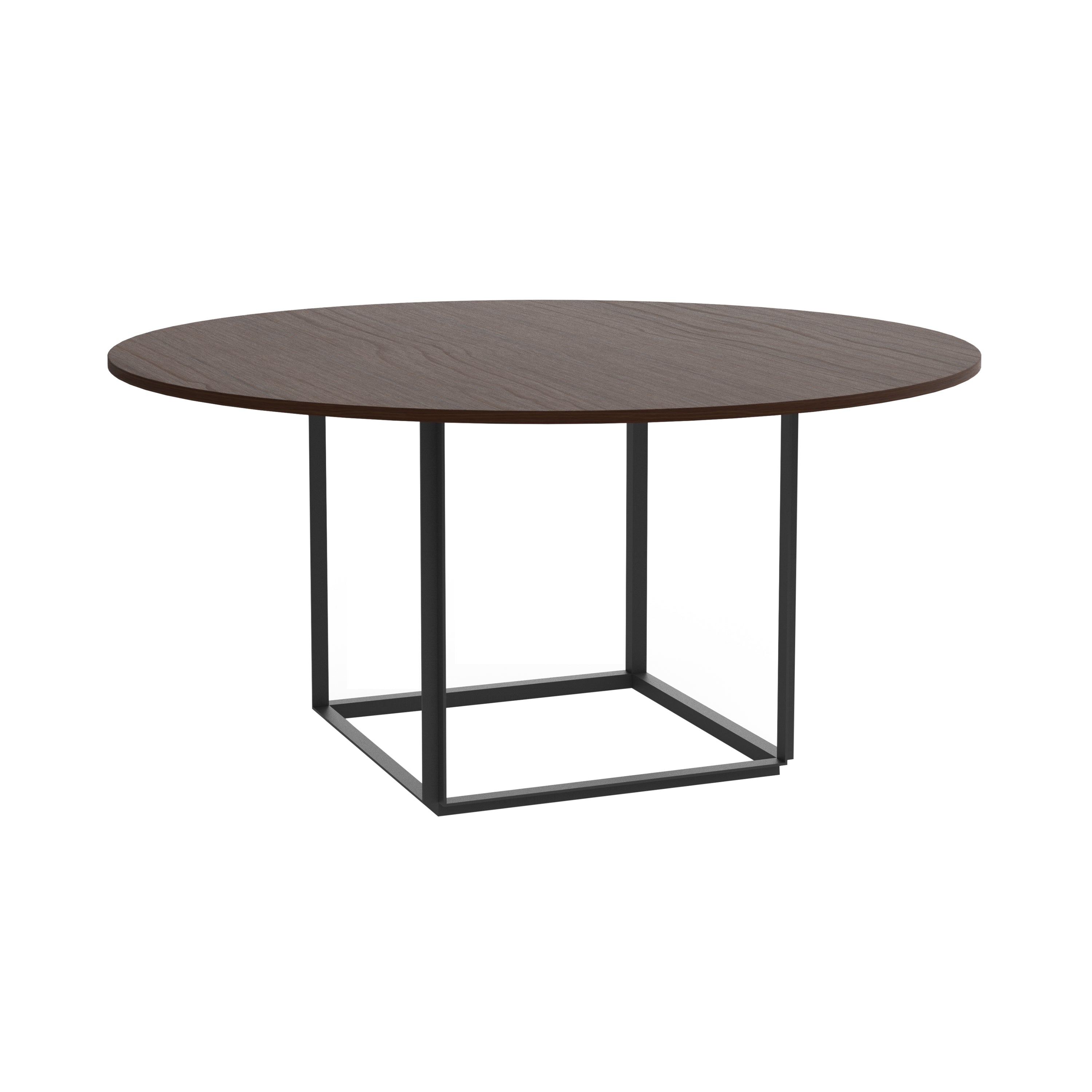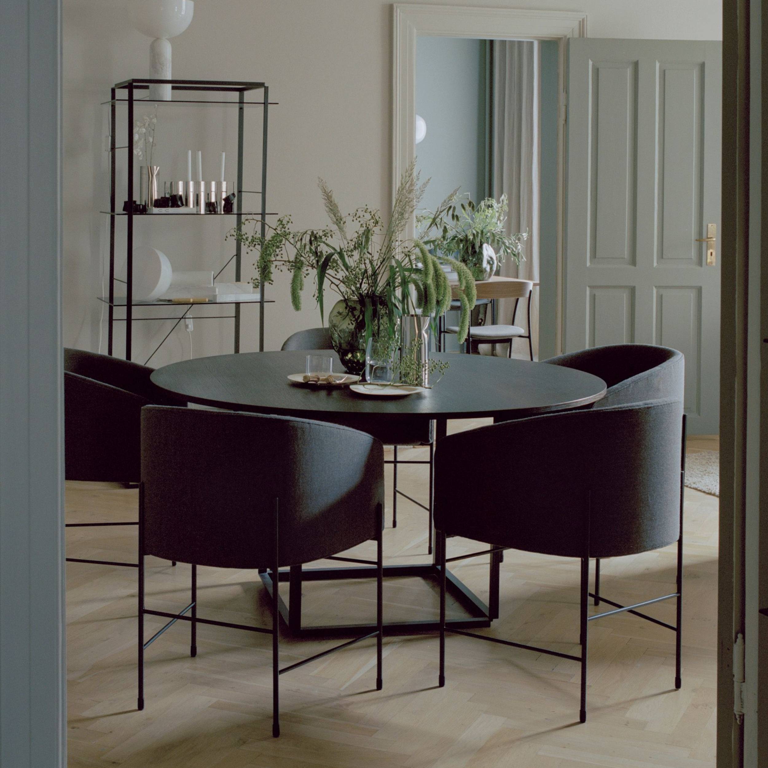 Adding a richly dense wood tabletop complements the restrained geometry and airy negative space of New Works' Florence series. In this version, creative director Knut Bendik Humlevik with designer Josefine Hedemann play the timber's tactile quality against the smooth iron base. With round tabletop, available in 2 sizes; crafted in black-stained ash, smoked dark oak or natural oiled oak.