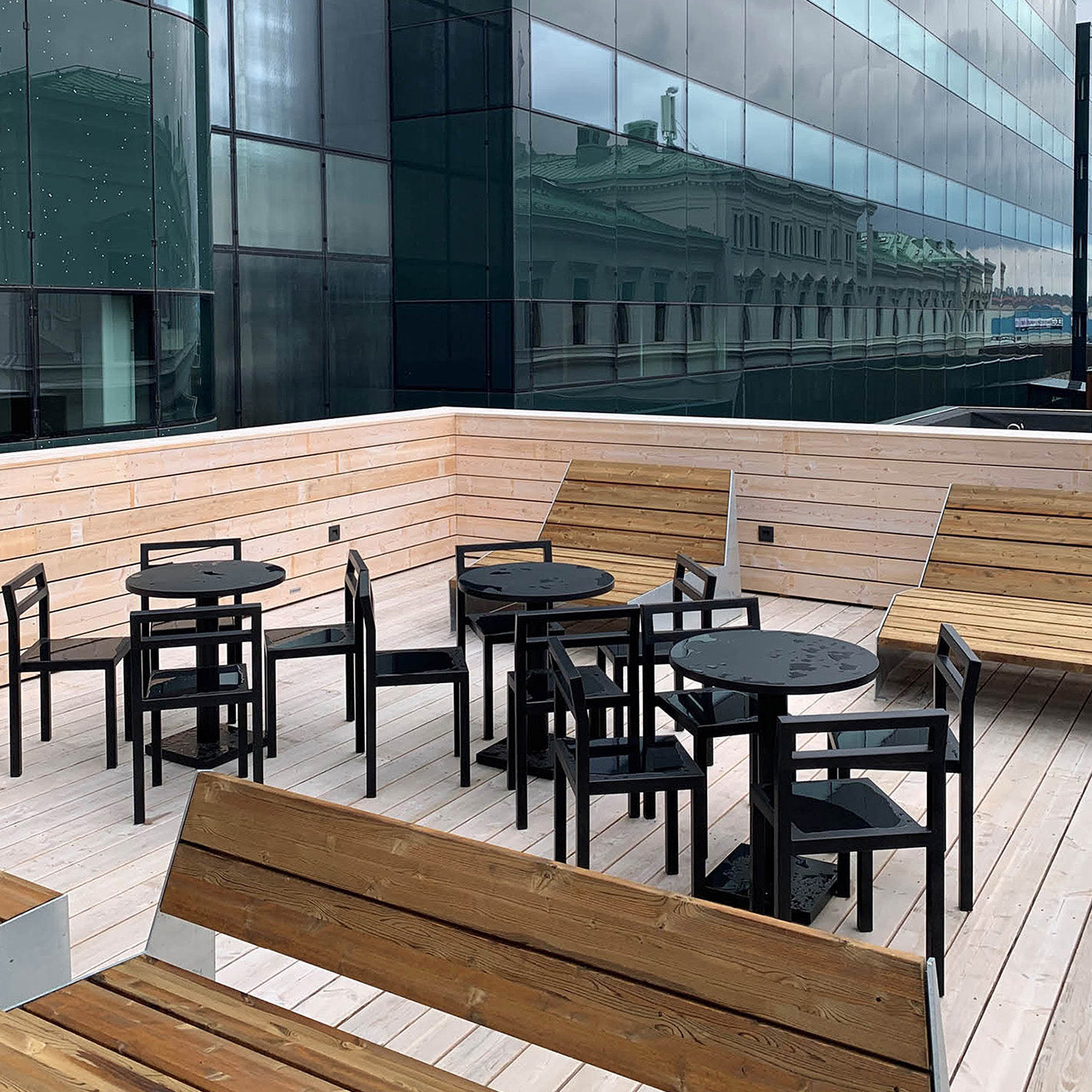 The Källemo Non Table is crafted with a molded PUR rubber surface that offers both resilience and a distinctive tactile quality. Its steel frame, wrapped in durable rubber, ensures long-lasting performance while adding to the table's unique aesthetic. Available in both round and square tops, the Non Table adapts to different environments, from cafes to office spaces.