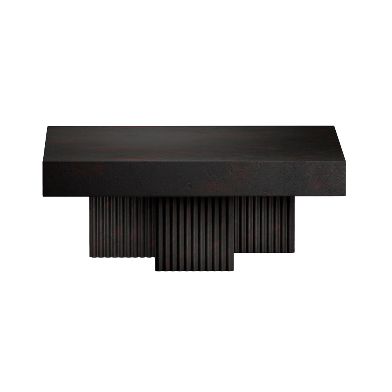 The Gear Coffee Table is a sculptural piece inspired by mid-century Brutalist architecture. Designed by Kristian Sofus Hansen and Tommy Hyldahl, it features a circular top supported by three cylindrical, fluted legs. Made from fiber-reinforced concrete, the table has a tactile, stone-like texture, giving it a rugged yet refined look. Each table is hand-painted and unique, available in earthy tones like Chalk and Earth.