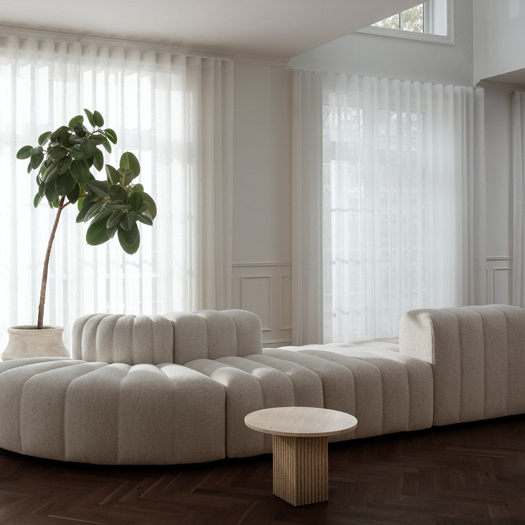 The Soho Coffee Table is inspired by the fluted architectural facades of New York’s SoHo neighborhood. It is made from natural travertine stone, giving it a unique surface texture with visible small holes and imperfections that add character. Its vertical, slim profile plays with light and shadow throughout the day, enhancing its architectural presence. It’s designed to be lightweight and easy to move. The Soho Coffee Table is available in two sizes—low and tall—and offers a natural stone finish that varies in color and pattern, making each piece unique.