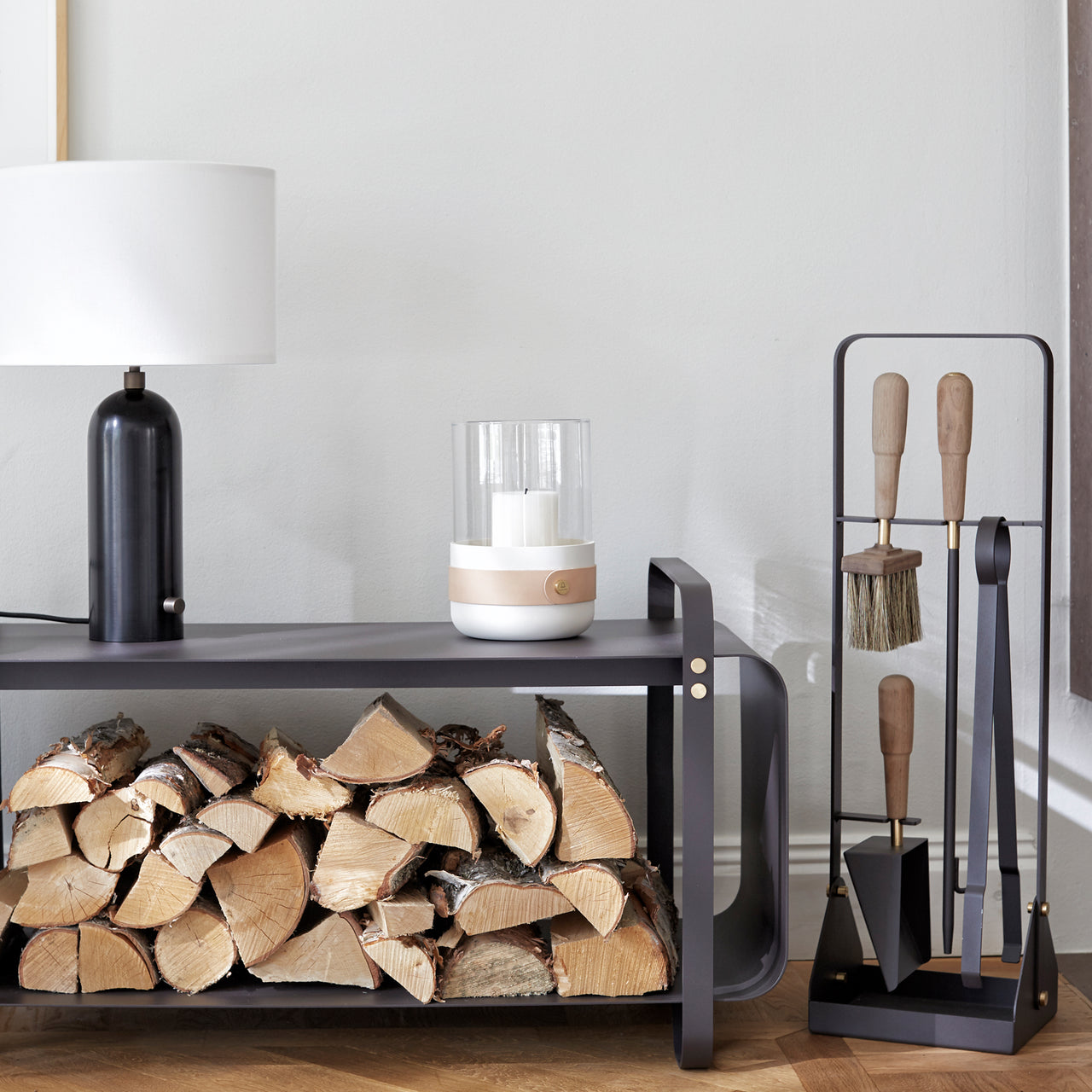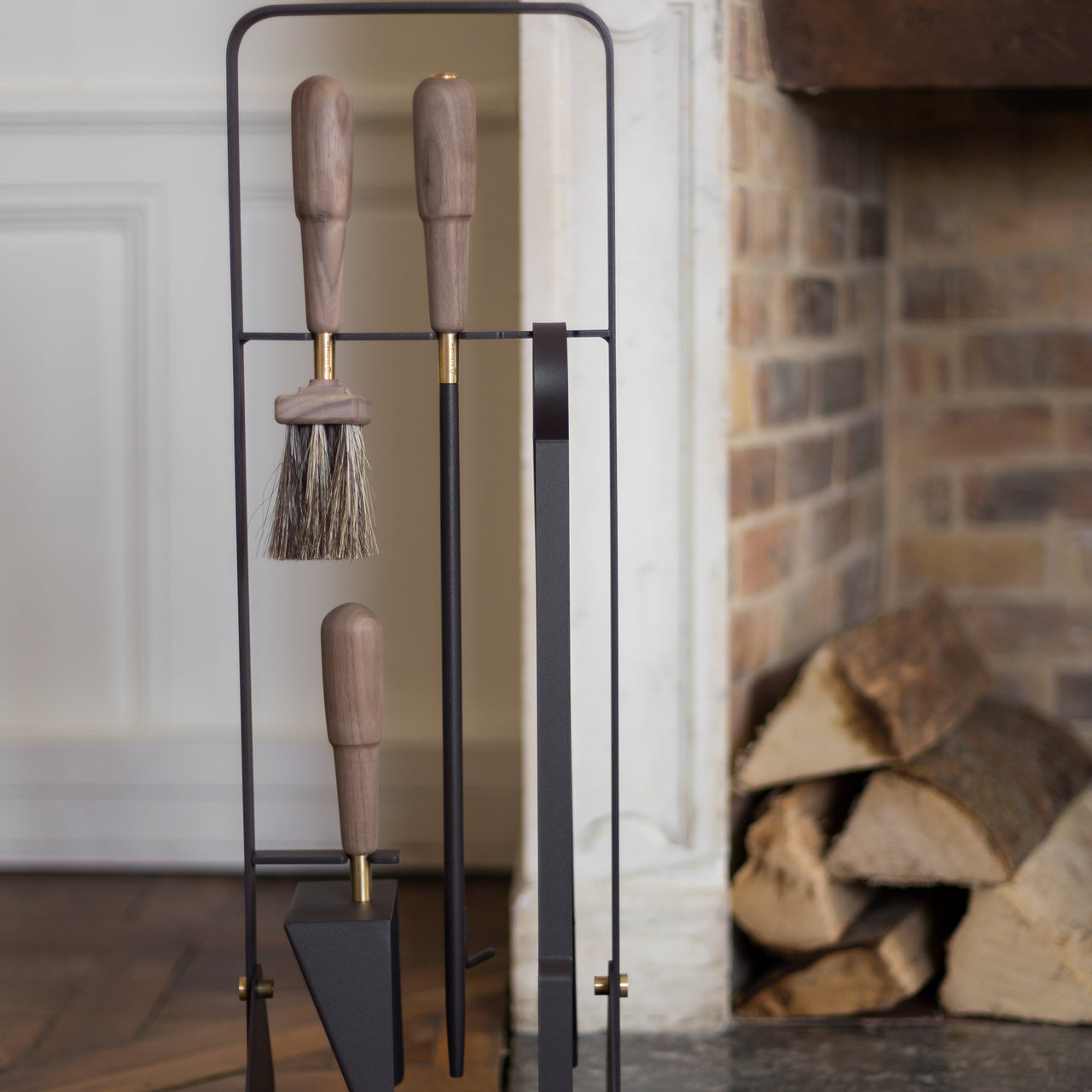 Light your fire with this exceptional hearthside set. Louise Varre’s heritage of growing up surrounded by Nordic design, coupled with her family’s fireplace business situated in Grâces, a township in the Brittany region of France, inspired these luxuriously modern accessories. Louise selected the finest materials for the Emma Series: beech handles from sustainable forests in France, natural horsehair bristles, powder-coated steel with brass details and natural leather from renowned Swedish tannery Tärnsjö. Set includes tongs, brush and shovel to clear away excess ash and the exclusive blow poker. This handy implement can be used both as a blower to more easily give kindling a start and also to prod and arrange logs to keep the fire burning.
