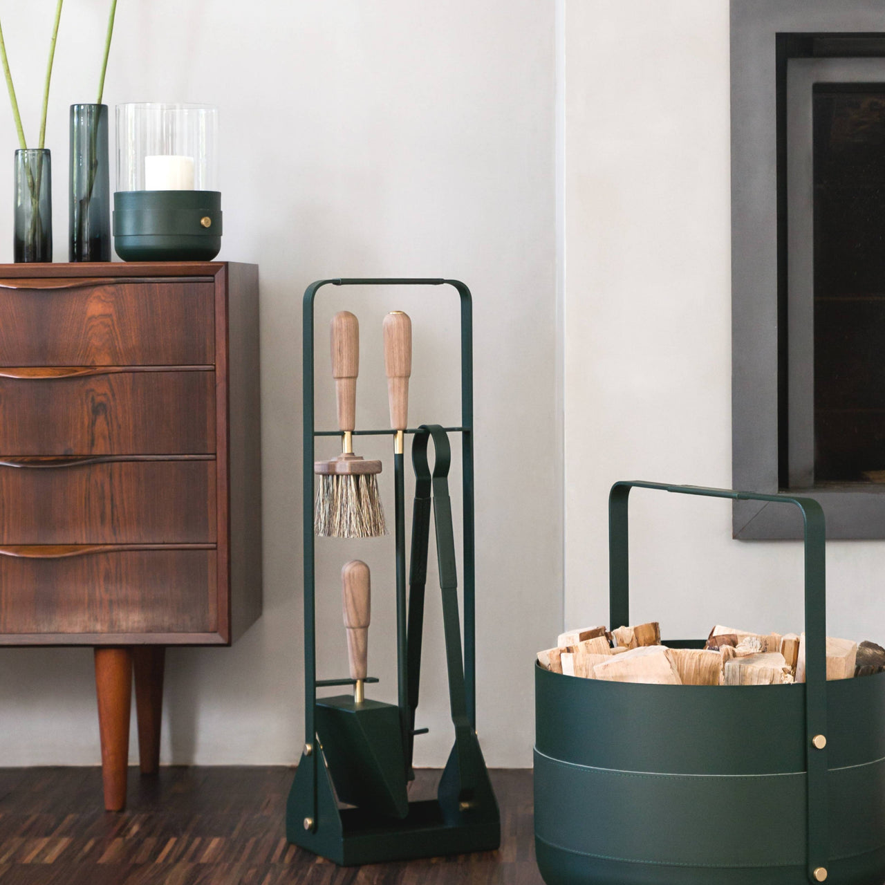 Childhood memories of basking in a fire’s glow during long Swedish winters and blissful but brief summers led Louise Varre to found Eldvarm in 2015, with a focus on elevated fireplace accessories made by highly skilled craftsmen and little waste. The collection, designed by fellow Swede Emma Olbers, is made in European countries with long traditions in individual crafts. Leather is vegetable-tanned and certified organic in a century-and-a-half-old Swedish tannery. The 100% natural horsehair brushes are assembled in a third-generation family business in Nantes, France. And so on. All the materials are responsibly sourced, including the wood from sustainably managed forests in France (beech) and the United States (walnut).