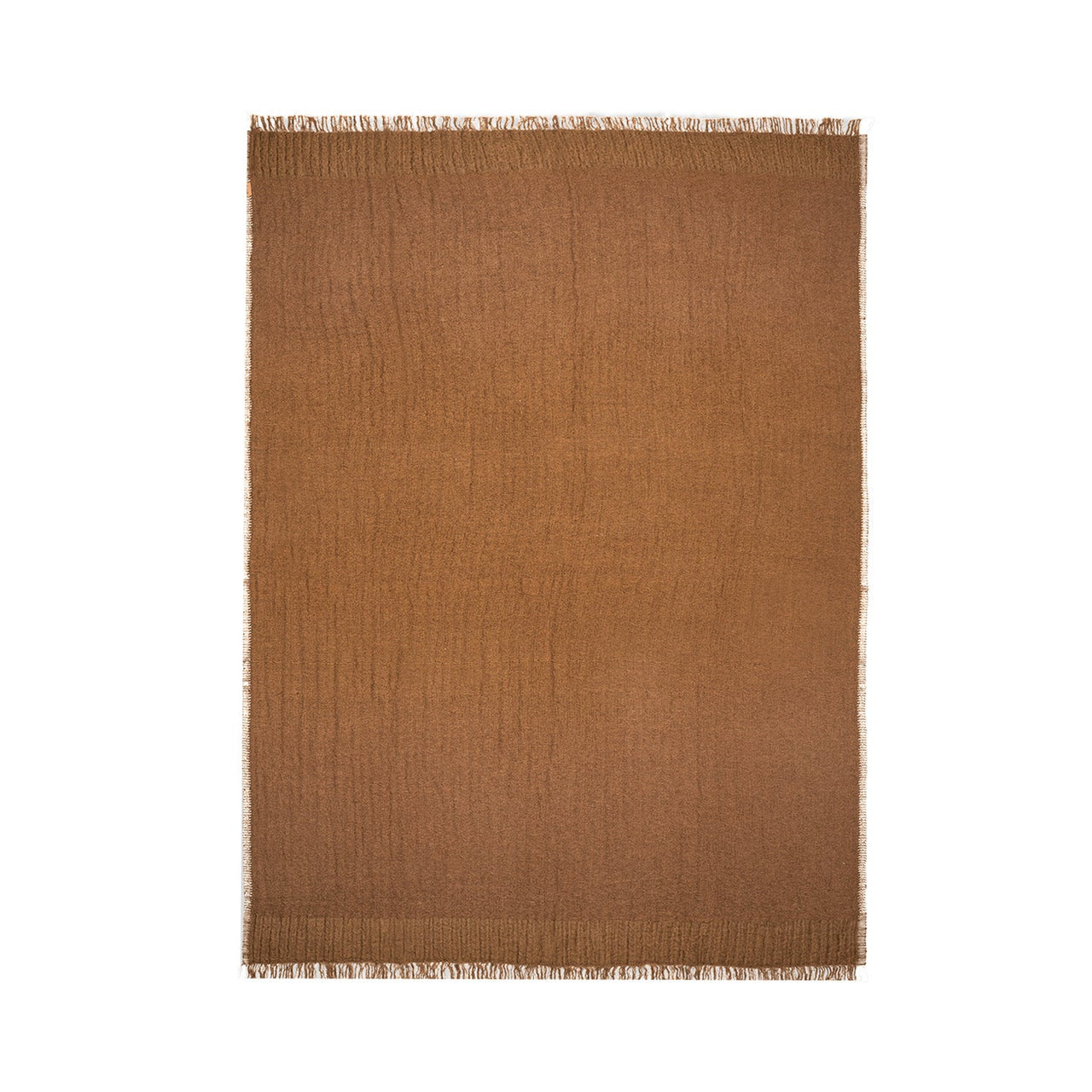 The Weaver Throw is handwoven from a blend of linen, wool, and cotton, resulting in an artfully irregular surface. Its delicate selvedge edge is adorned with fine fringe, adding to its tactile appeal. Available in 4 colors, Red Brown, Off-White, Sugar Kelp, Grey Green, and Avocado.