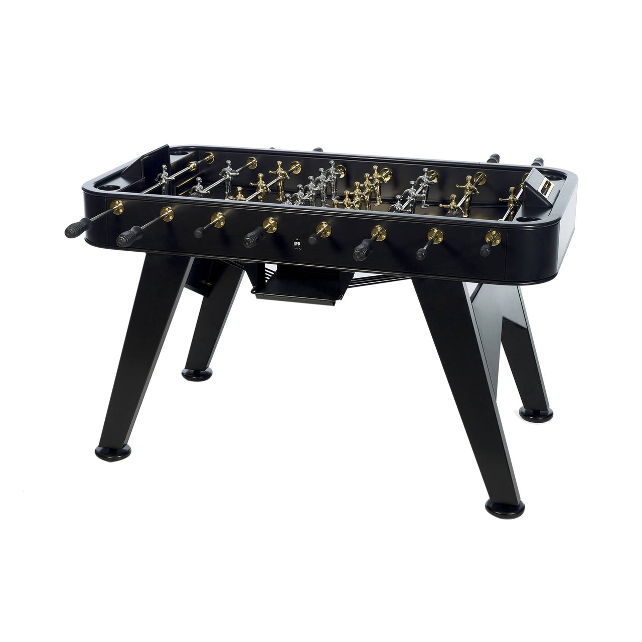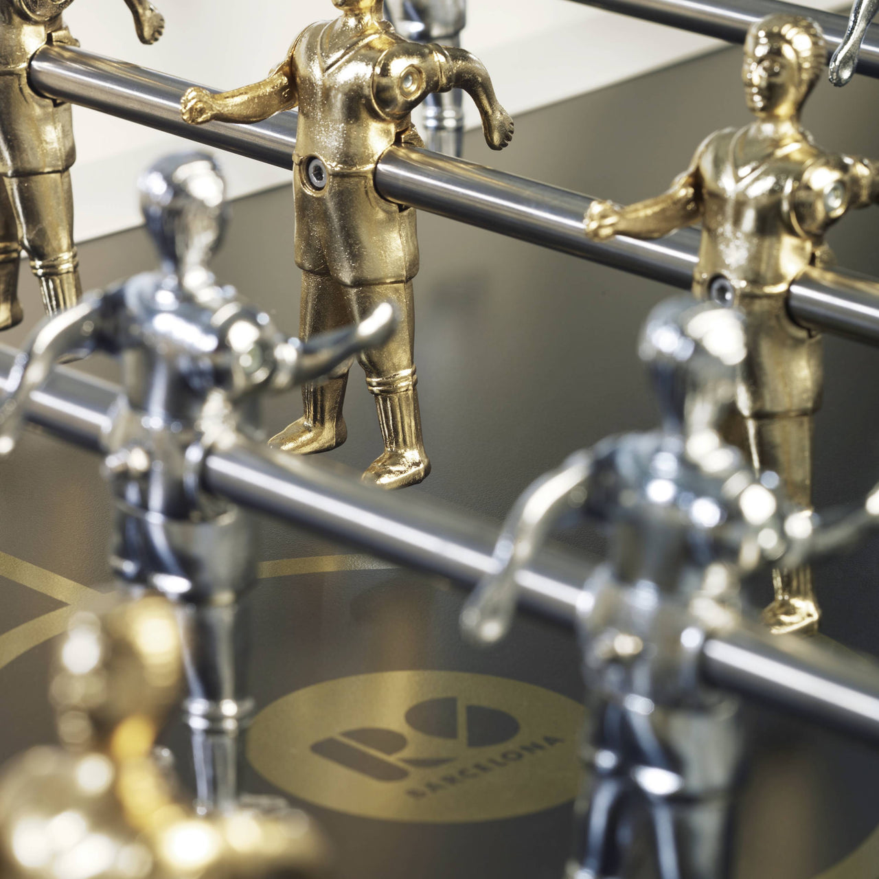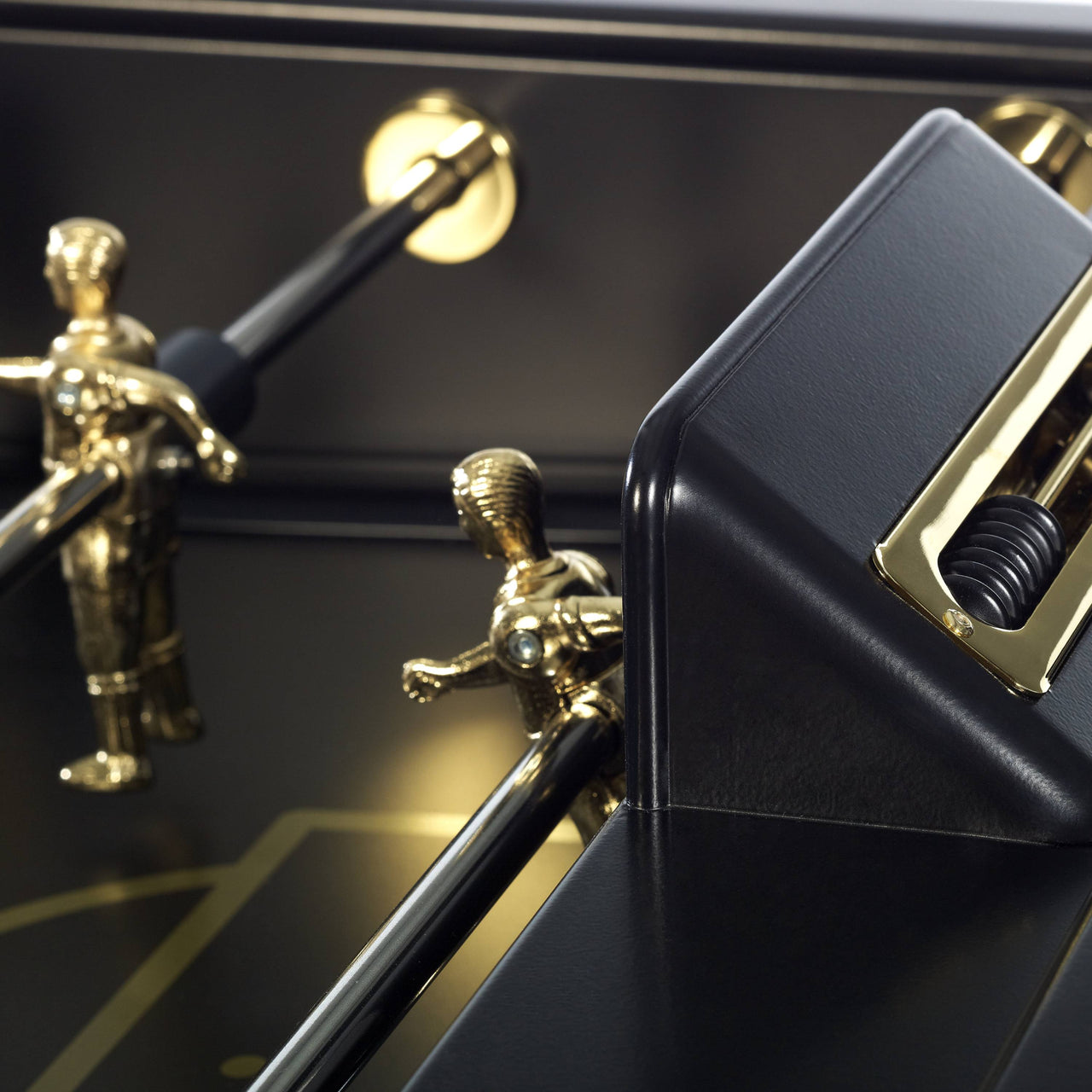 RS Barcelona goes for the gold with its VIP foosball table featuring gleaming metal players and 24K detailing. Dressed to the nines, the teams are suited up in polished gold-tone and chrome plate, with the score-counter, ball bearings, screws and other fittings rendered in pure gold. Though it radiates suave style in tuxedo-like black or white, this table has all the competitive capabilities for hours of gameplay and spirited matches that RS Barcelona is known for.