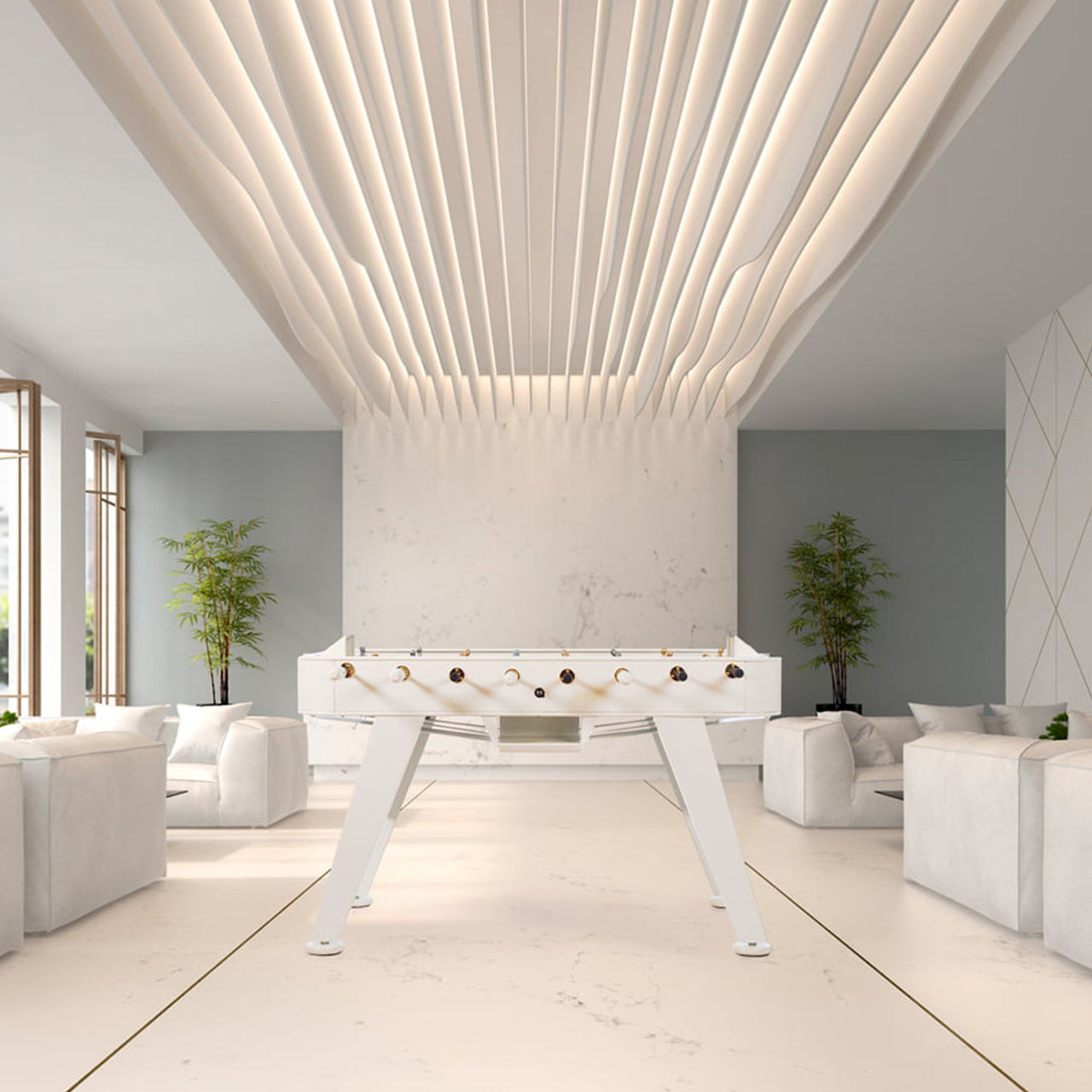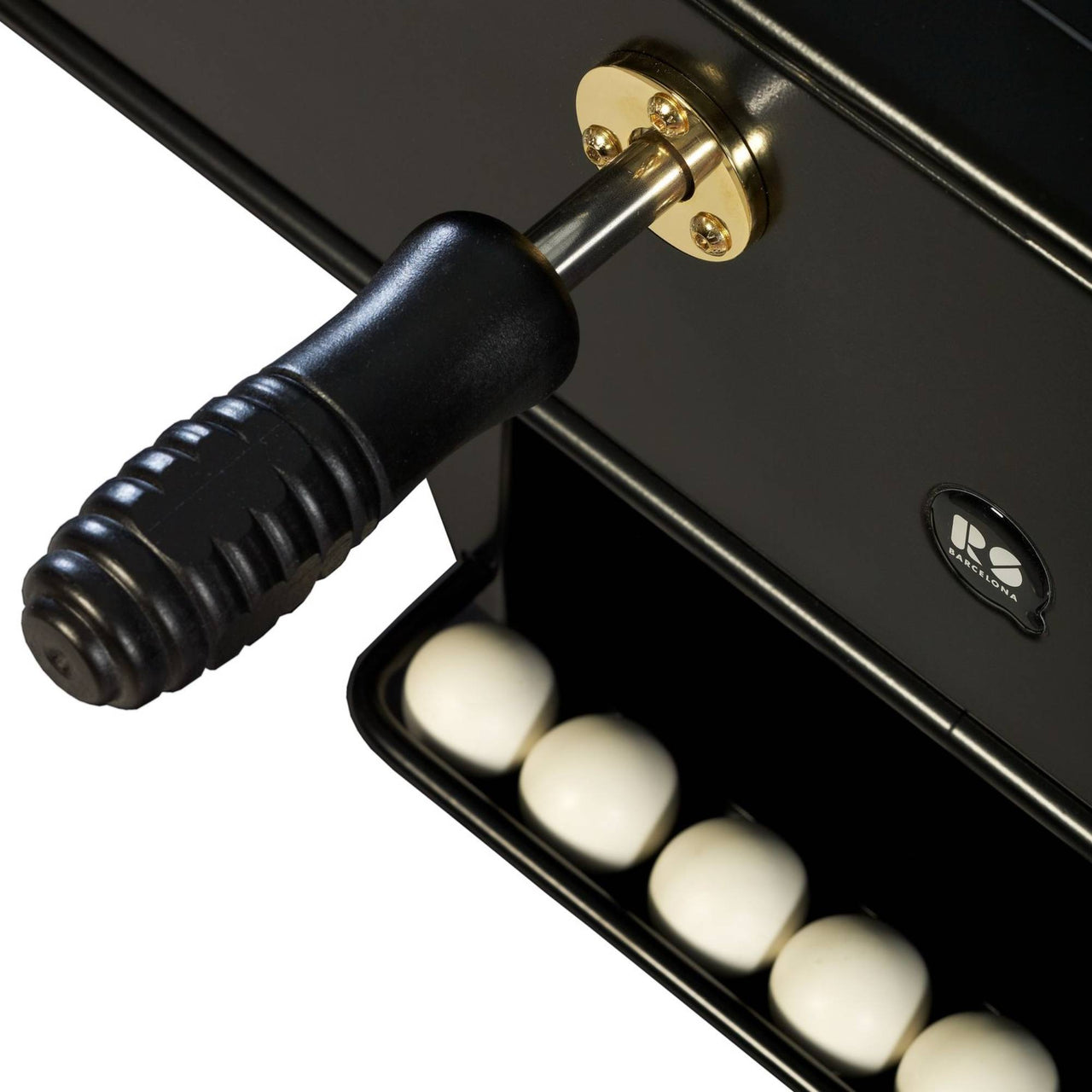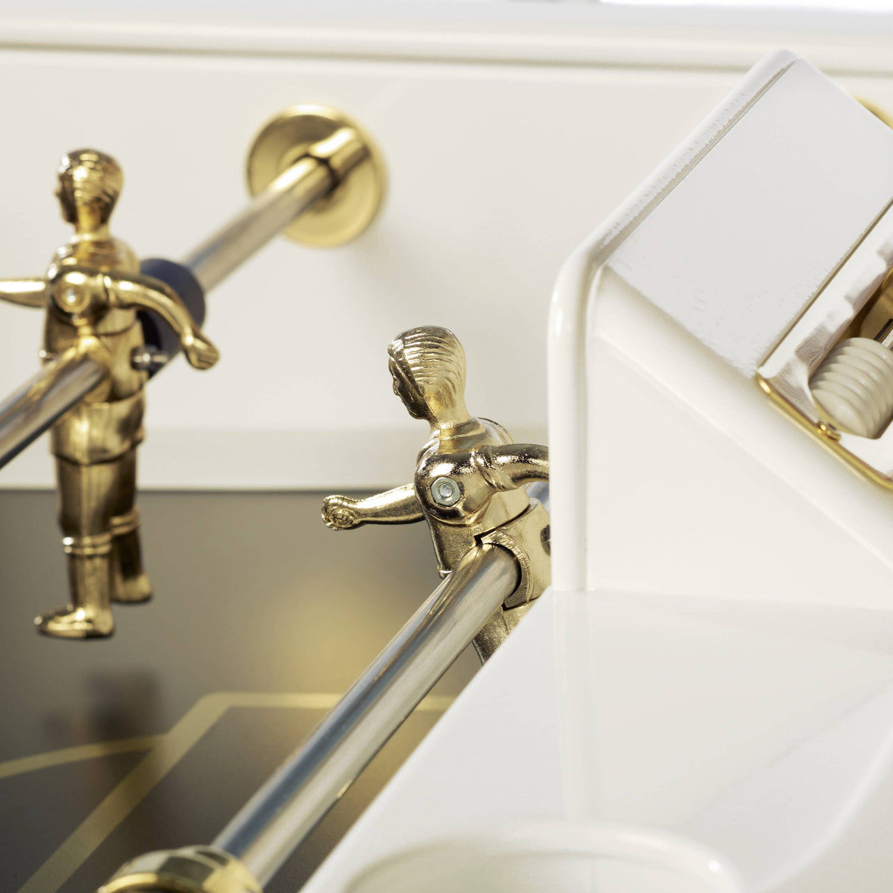 RS Barcelona goes for the gold with its VIP foosball table featuring gleaming metal players and 24K detailing. Dressed to the nines, the teams are suited up in polished gold-tone and chrome plate, with the score-counter, ball bearings, screws and other fittings rendered in pure gold. Though it radiates suave style in tuxedo-like black or white, this table has all the competitive capabilities for hours of gameplay and spirited matches that RS Barcelona is known for.