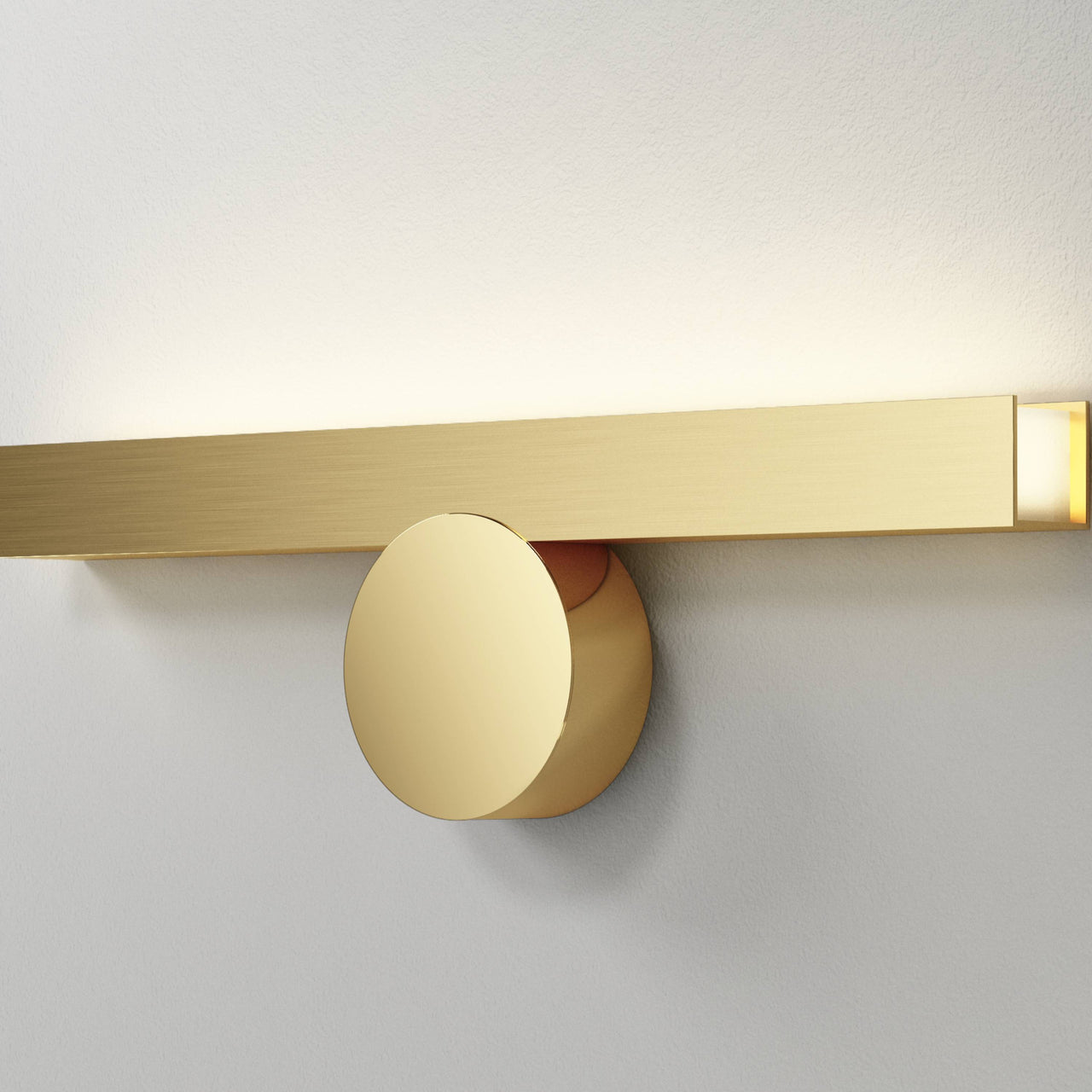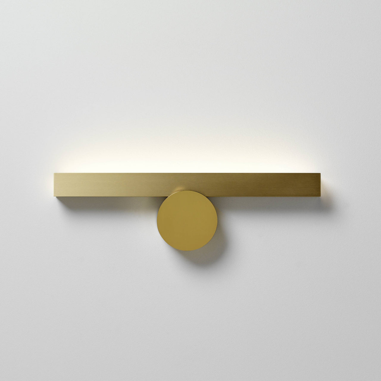 CVL’s horizontal IP Calé(e), like its 2 sibling versions, is designed expressly for use in the bathroom. “Caler" in French means to balance or to hold in place, which aptly describes the geometric  equipoise of the wall fixture’s round and linear elements as designed by Paris studio Pool. With an integrated LED light source for warmly even illumination, it’s composed of solid brass in a choice of matte or polished metallic finishes.