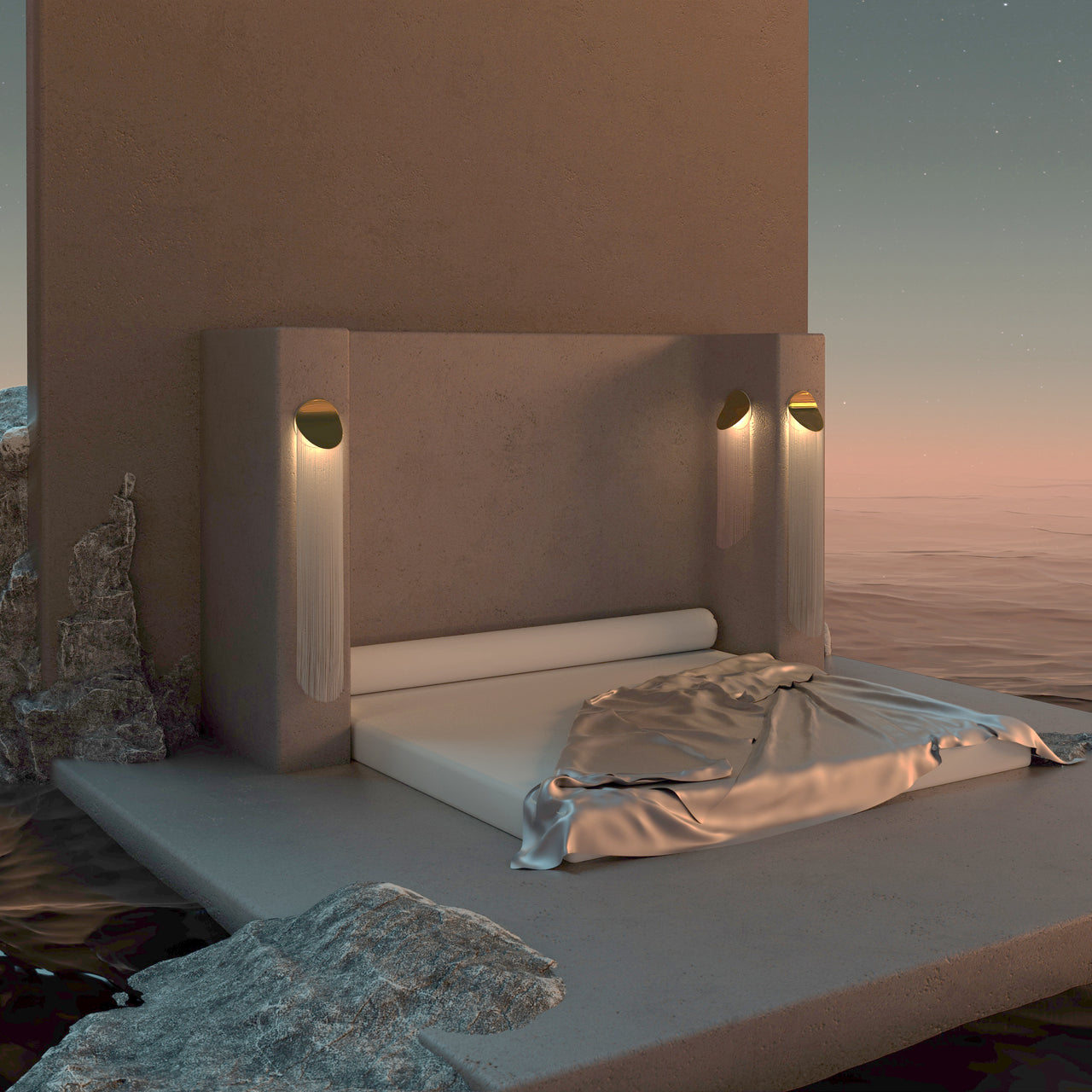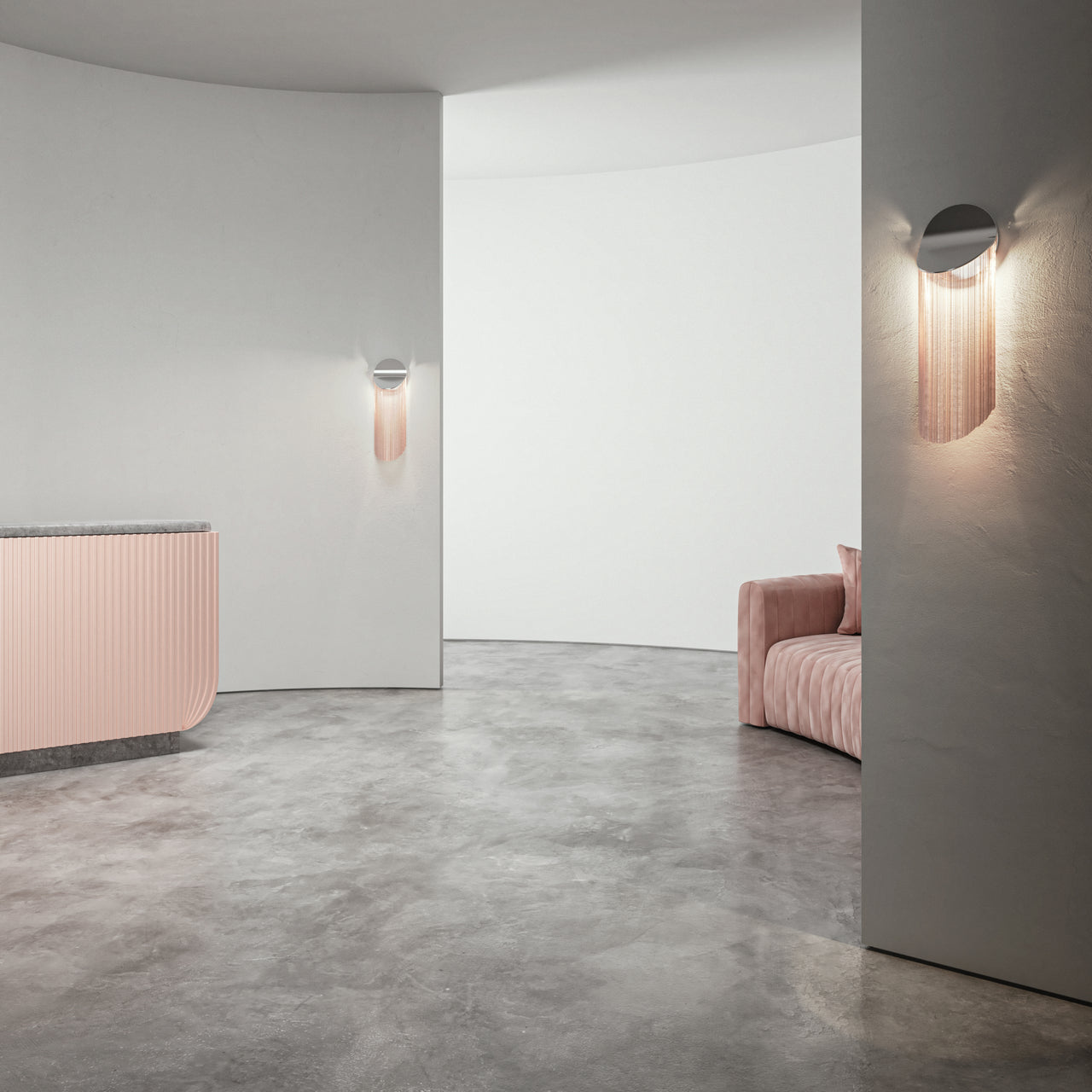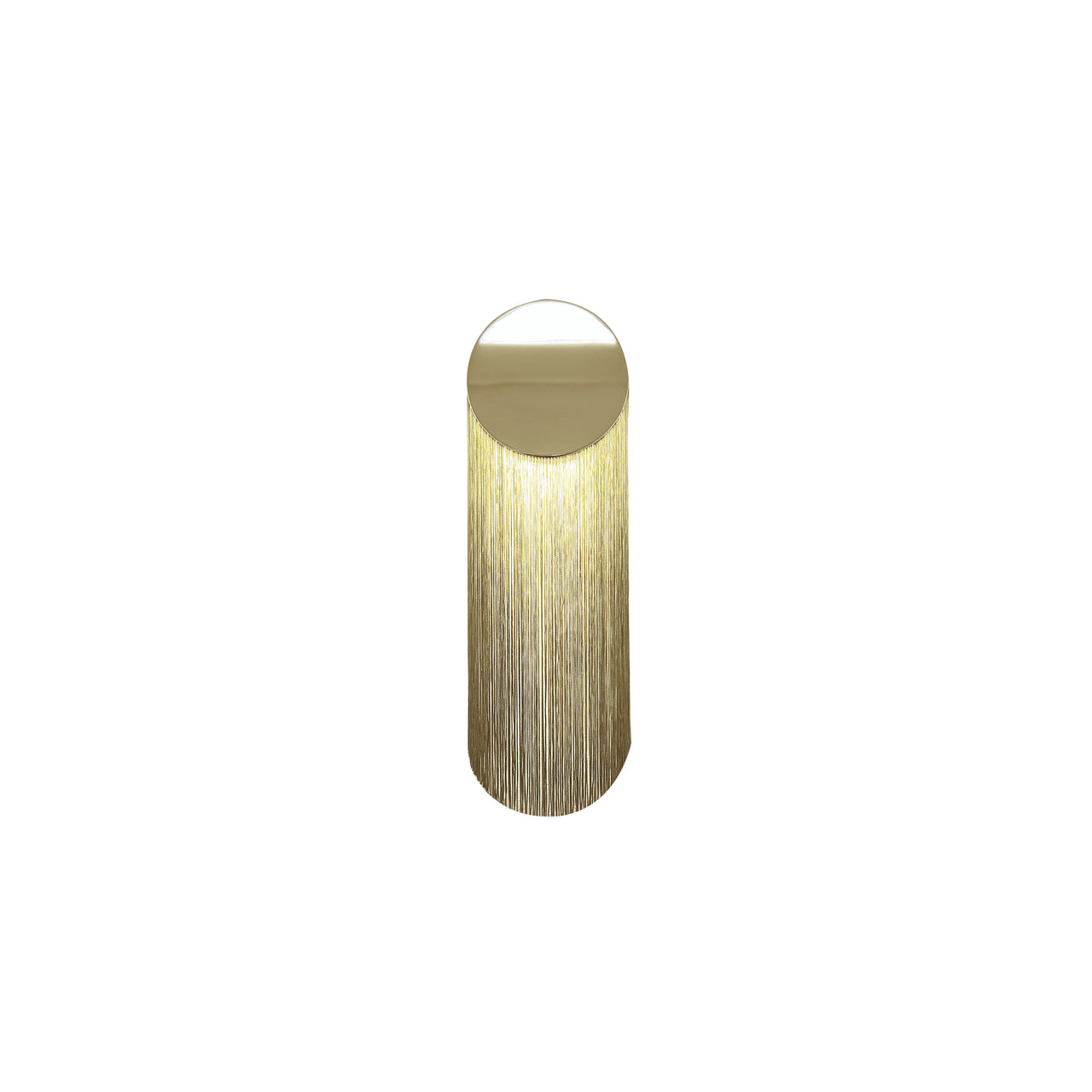 With its compact size and gentle, fluid curves the Cé Petite light compliments any space. The fringes provide a plush ambiance by diffusing the light, creating a contrast with their straight lines. The Cé Collection redefines the use of fringes in lighting, inspired by the mythological half-human half-snake figure of Cécrops, who symbolizes fluidity and reflection. ADA compliant.