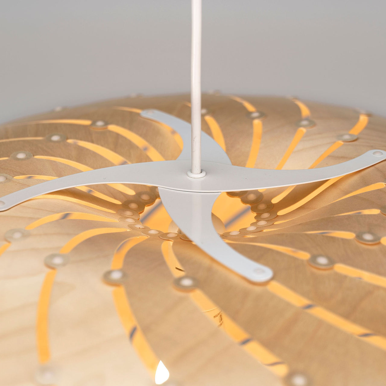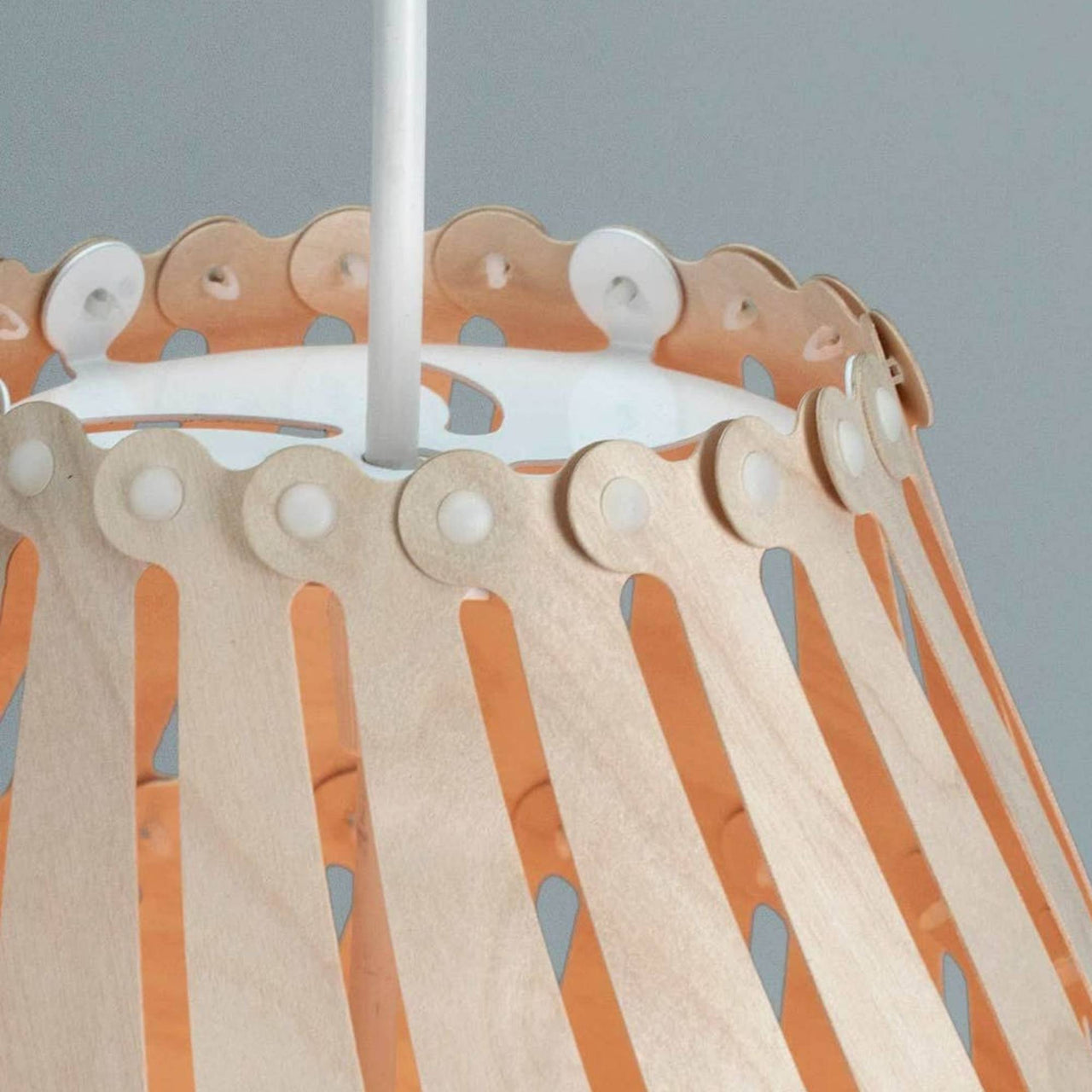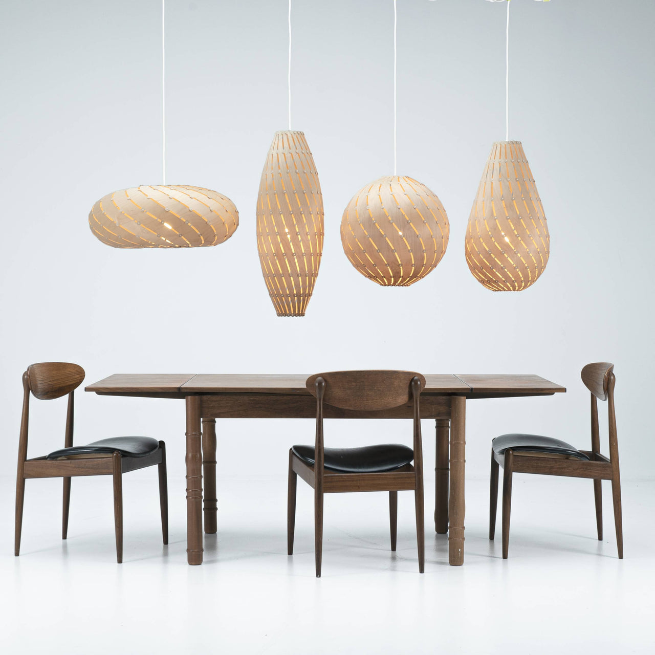 Longtime environmentalist designer David Trubridge adds a teardrop shade to his Ebb pendant series, with the characteristic swirl pattern inspired by ocean ripples. Now reworked in more sustainable ultra-thin Finnish birch plywood and held together with nylon clips, Drop has a lantern-like glow that also complements the natural woodgrain. It's even shipped in eco-friendly packaging as an easily assembled "kitset," complete with a cord-bulb holder and a ceiling canopy.