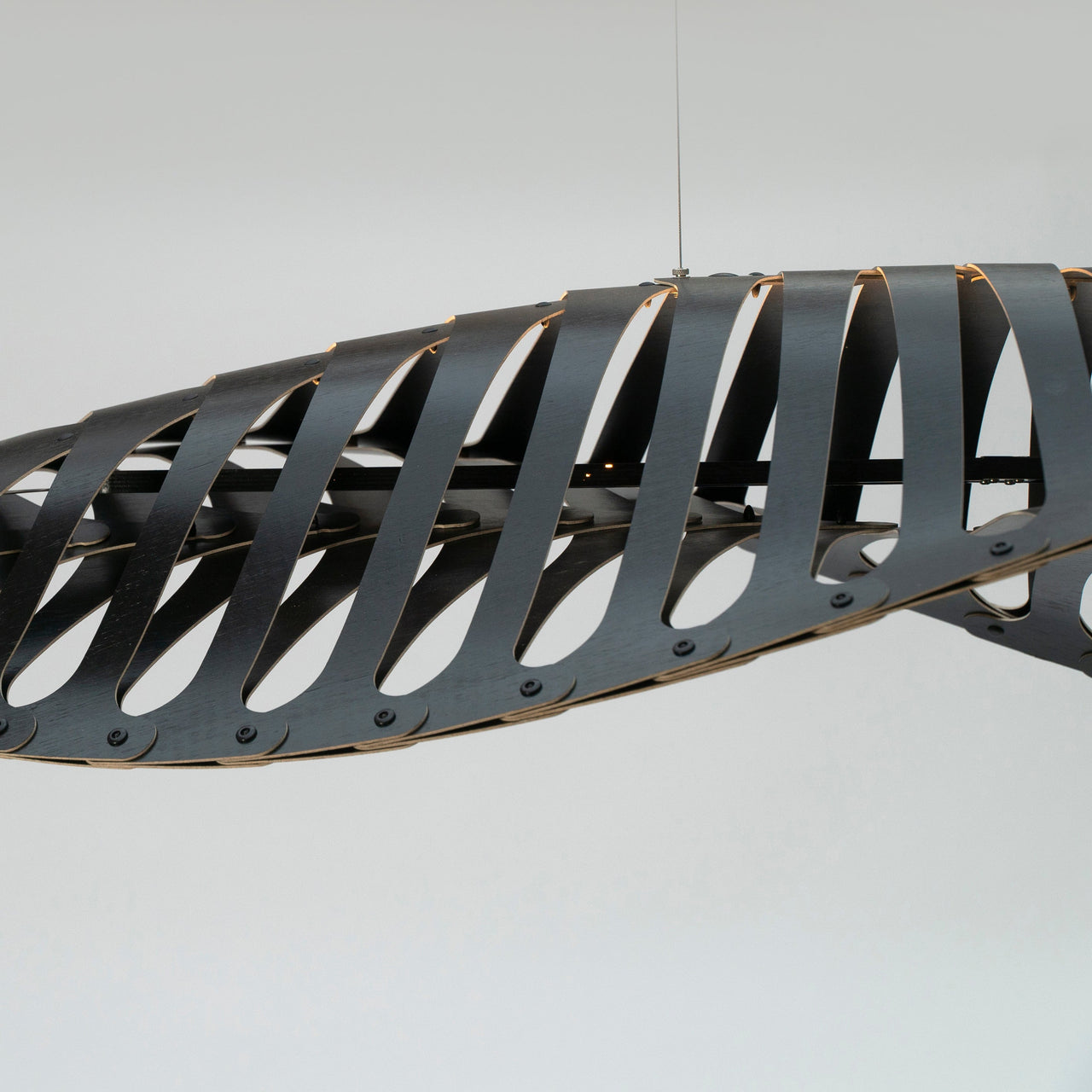 Navicula Pendant Light: Large - 98.4" + Bamboo + Black + Black