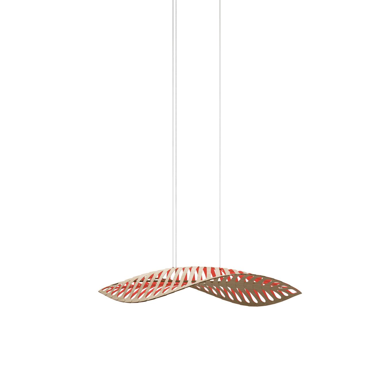 Navicula Pendant Light: Small - 56.7" + Bamboo + Red + White