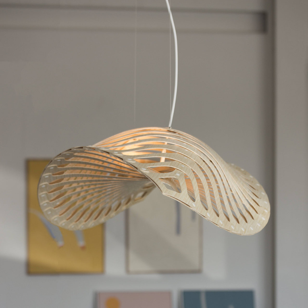 Navicula Pendant Light: Medium - 76.8" + Bamboo + White